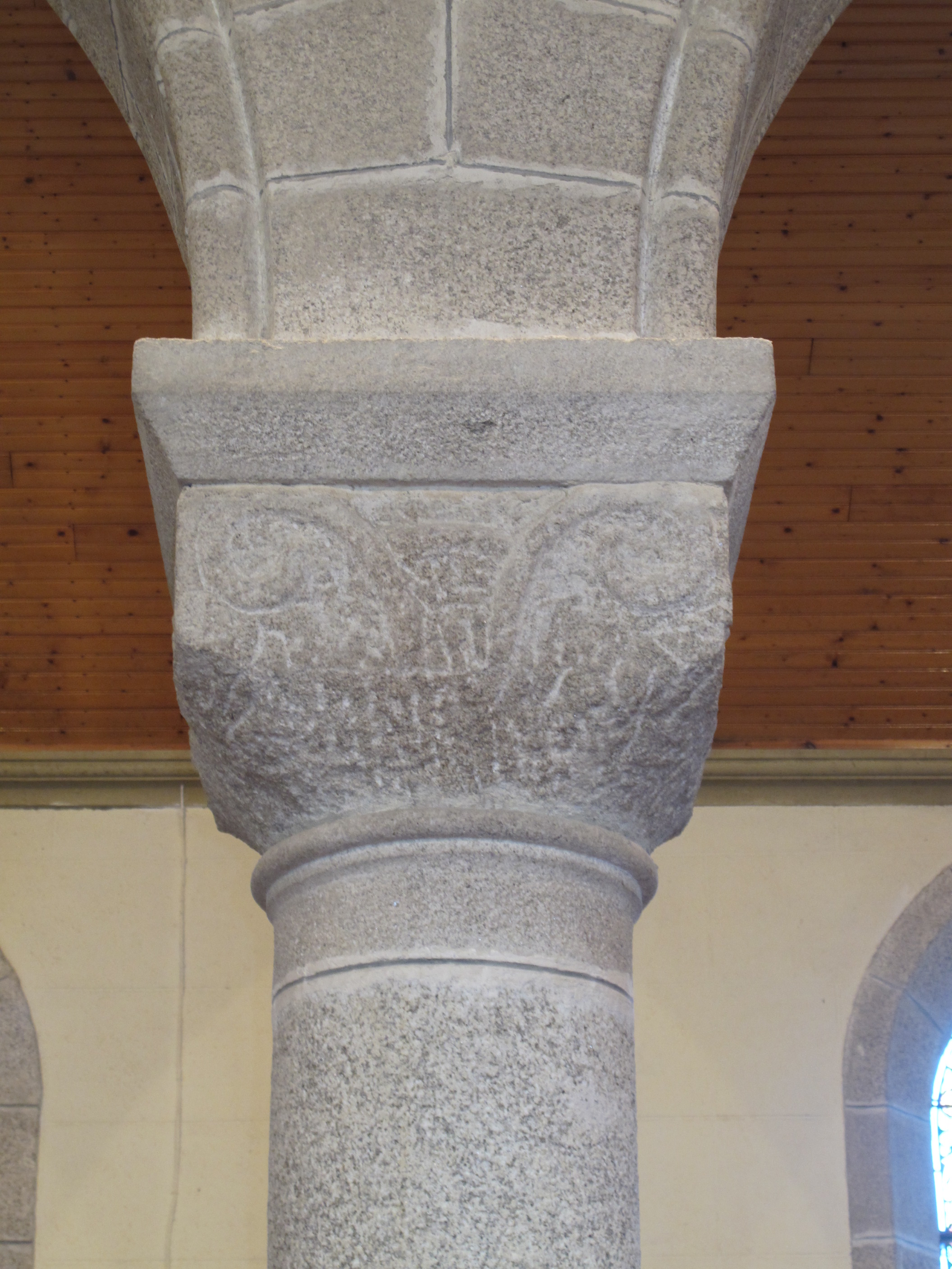 Nef, arcades du bas-côté nord, détail d'un chapiteau épanneléImmatriculation
