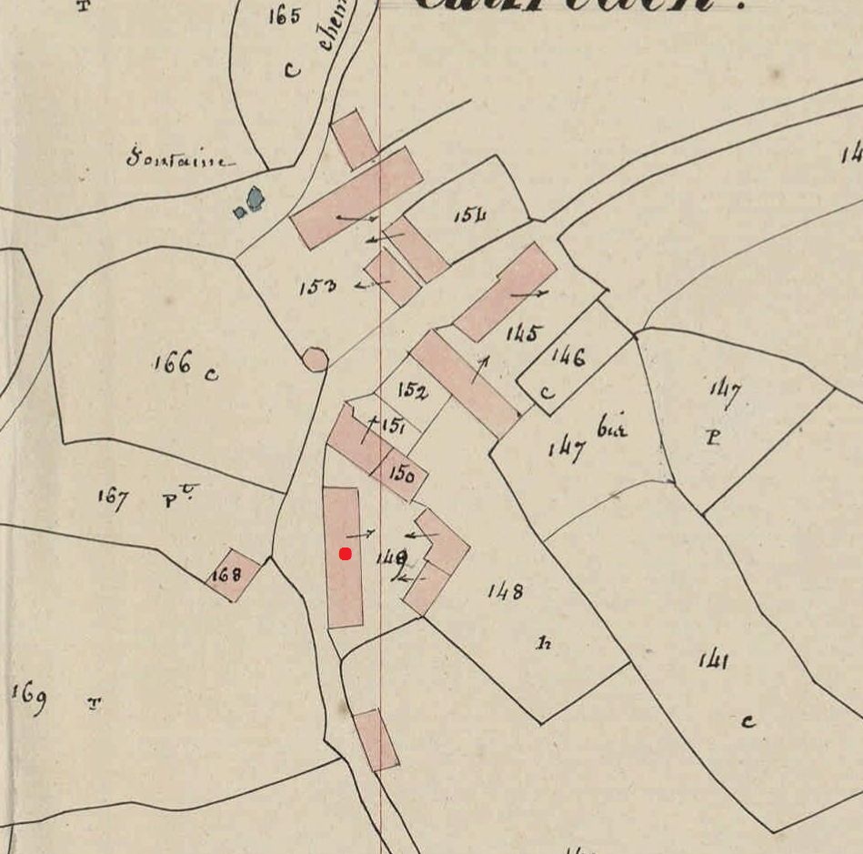 Ferme de Cauraden sur le plan cadastral 1842, section A2 (AD Morbihan, 3P 137)Immatriculation