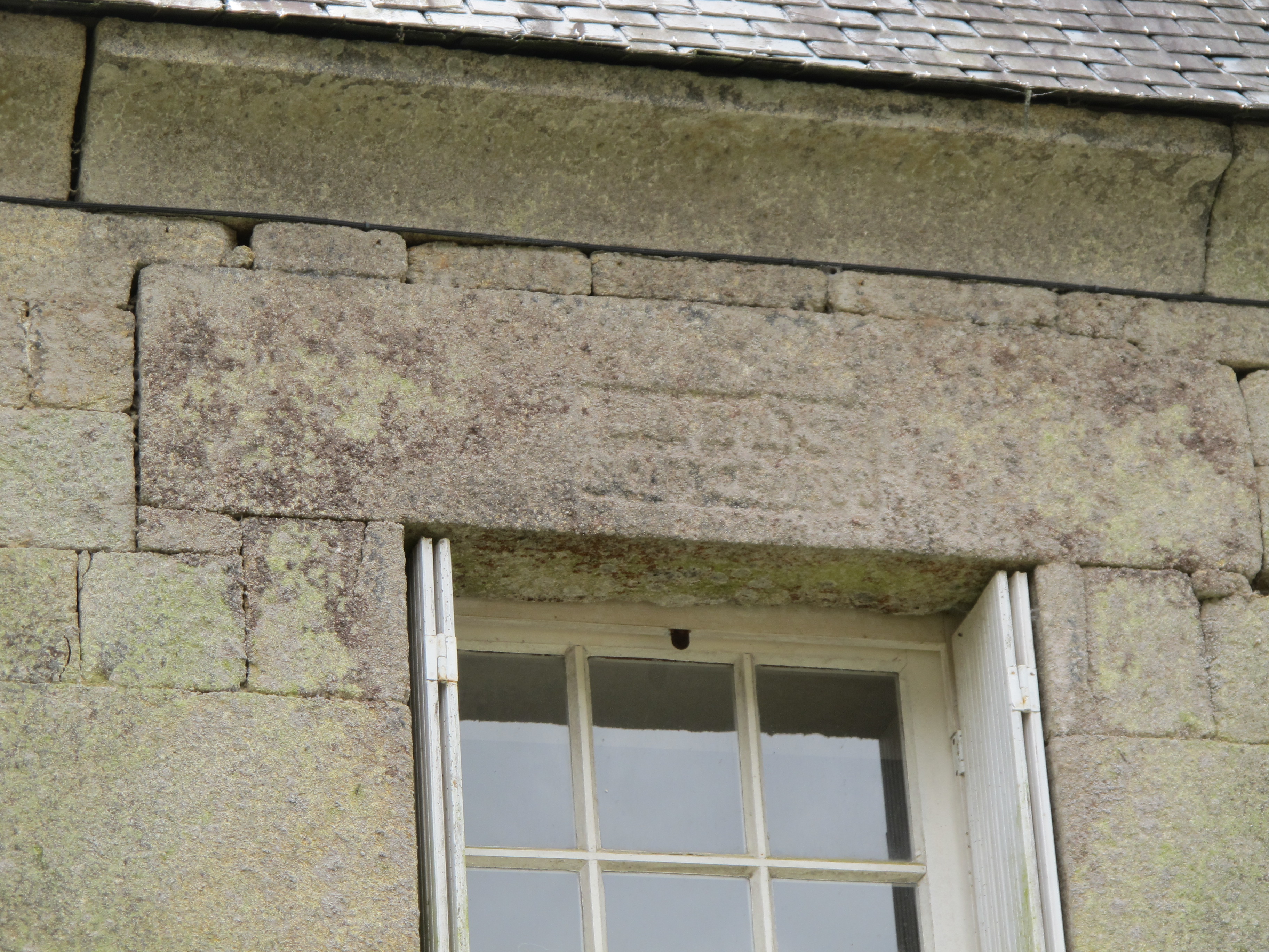 Elévation nord, inscription sur la fenêtre ouest de l'étageImmatriculation