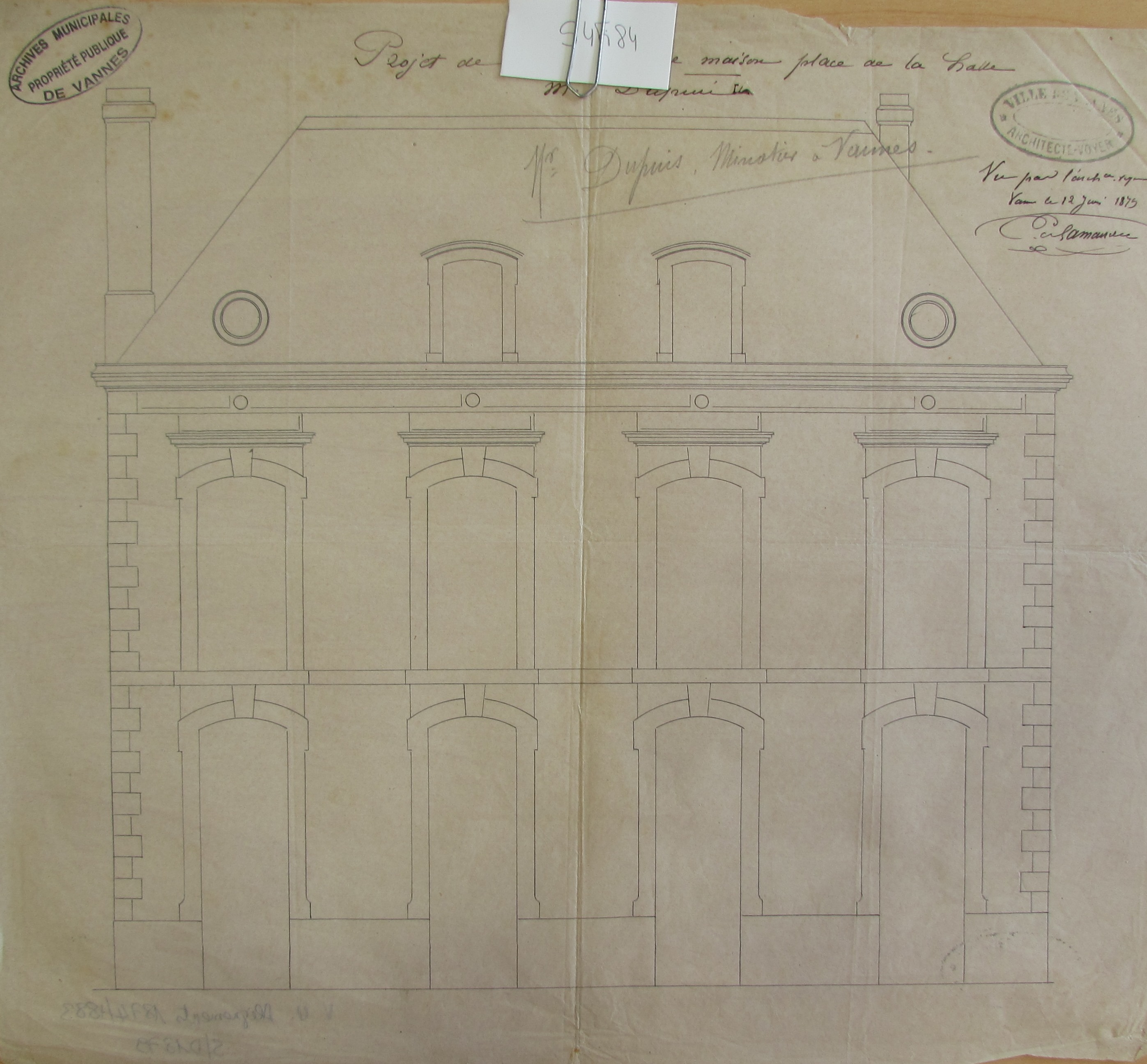 Projet de construction d'une maison pour Désiré Dupuy, 1879. AM Vannes 54Fi84.Immatriculation