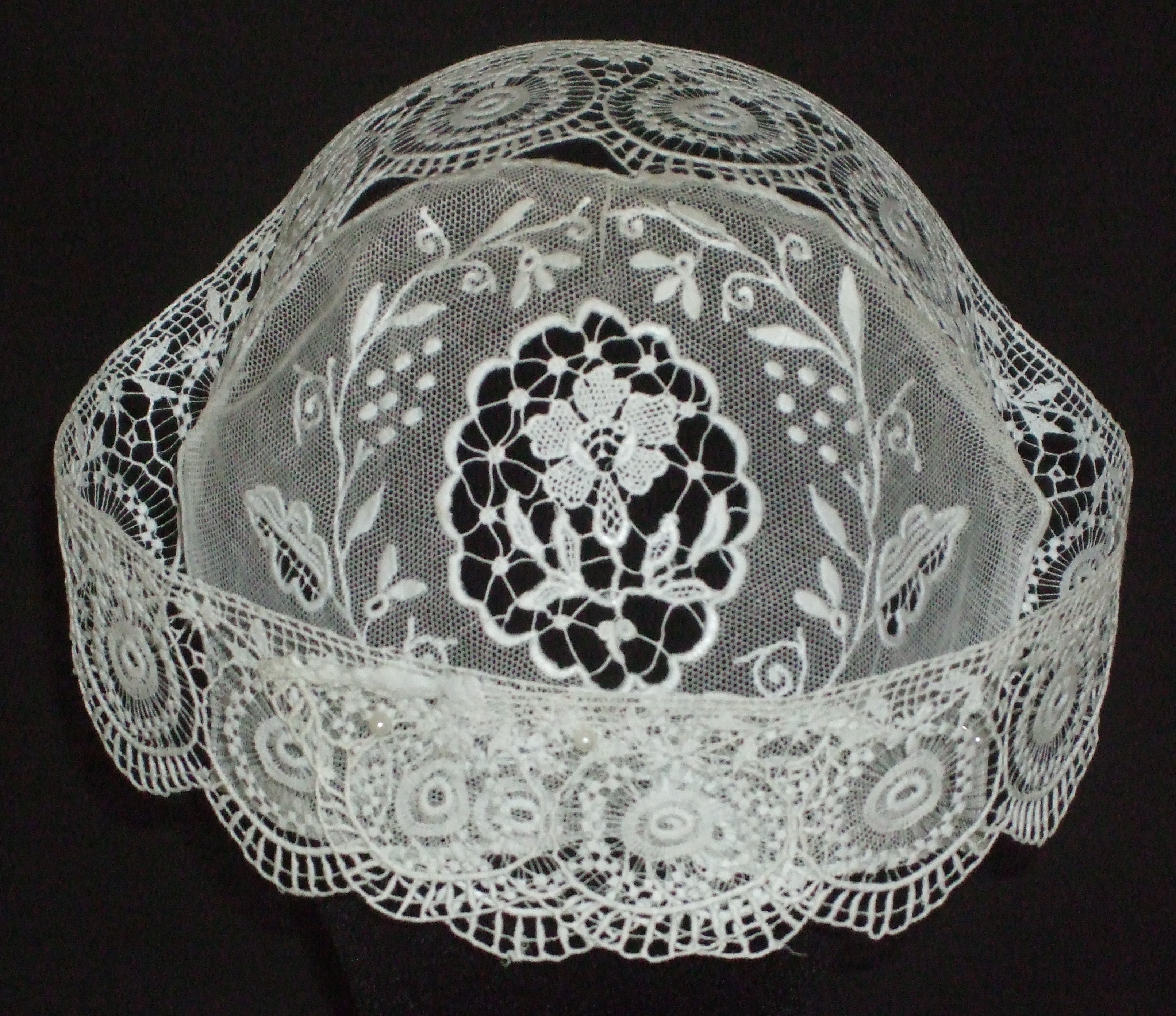 La collection de coiffes de Michel Rocher prouve cette évolution. Une deuxième coiffe avec le fond en tulle entièrement brodéImmatriculation