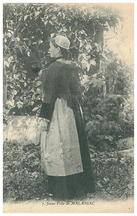 Jeune fille de Malansac. Les mentonnières de la sous-coiffe ont disparu ce qui représente l’évolution de la mode. CPA de Michel RocherImmatriculation