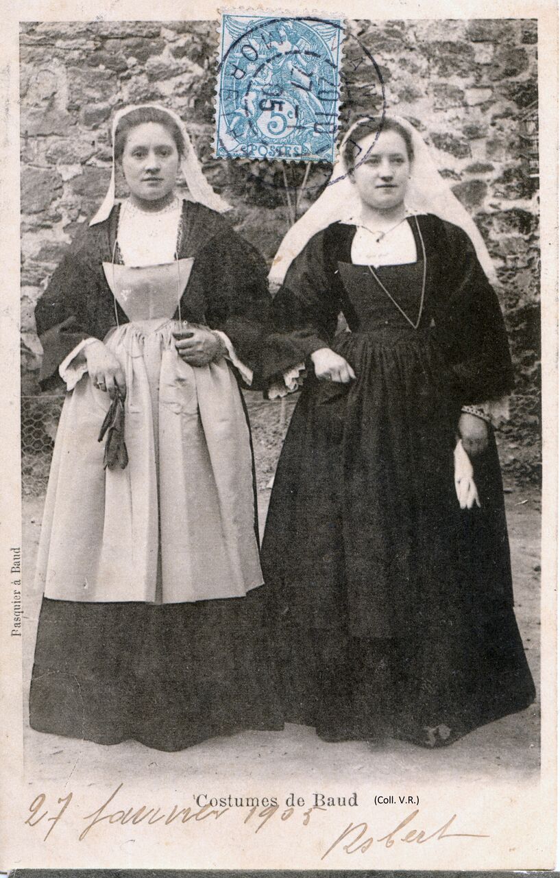 Coiffe d’artisane de Baud. (vers 1900). Personnage à gauche sur la photo. (Collection de CPA de Vincent Roussel)Immatriculation