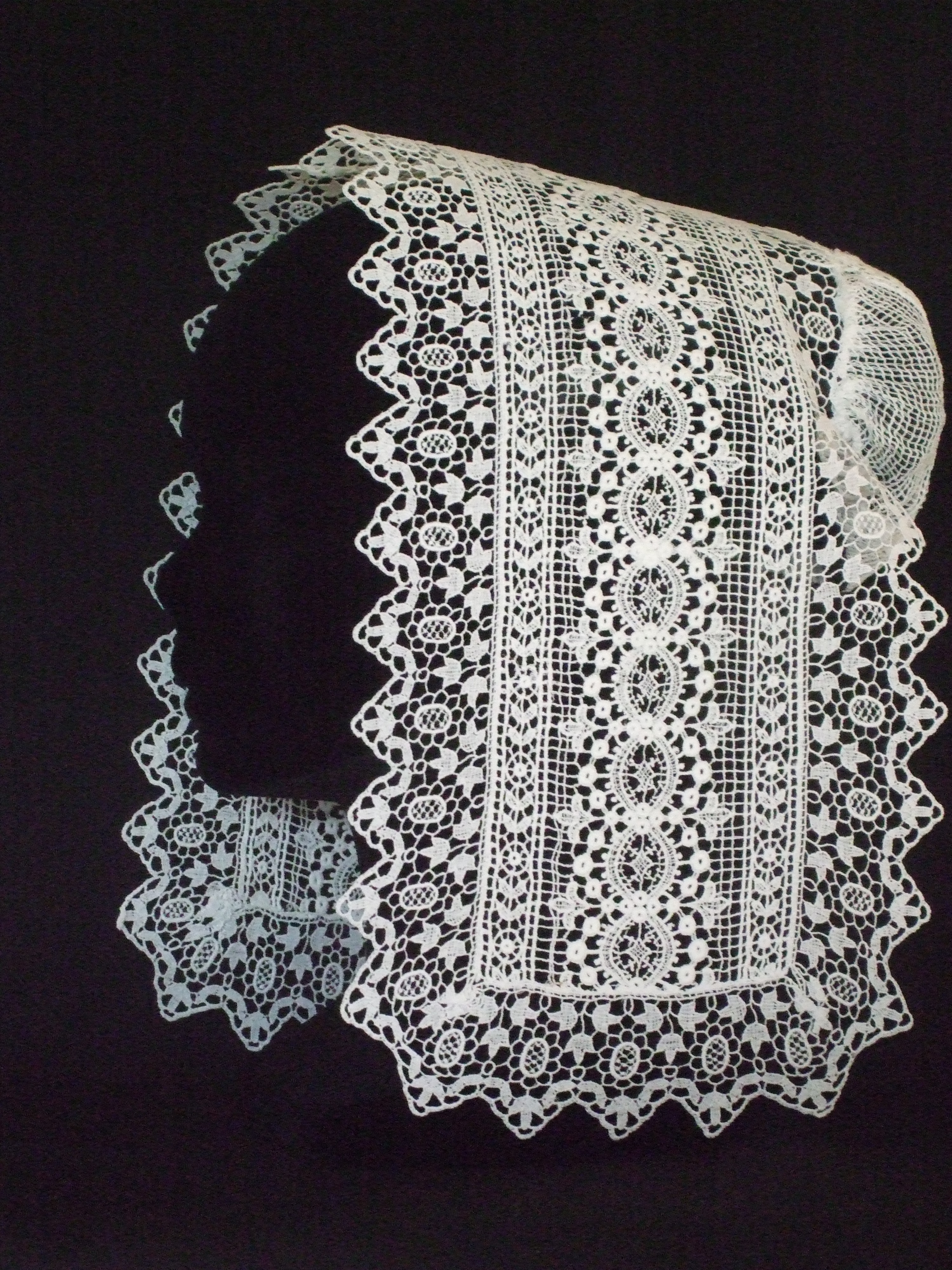 Coiffe d’artisane de Baud en guipure mécanique. Collection et photo de Michel Rocher.Immatriculation