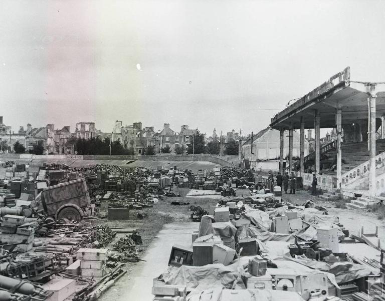 Archives municipales de Lorient 9 Fi 135 - Matériel militaire allemand rassemblé au Parc des Sports (mai 1945)