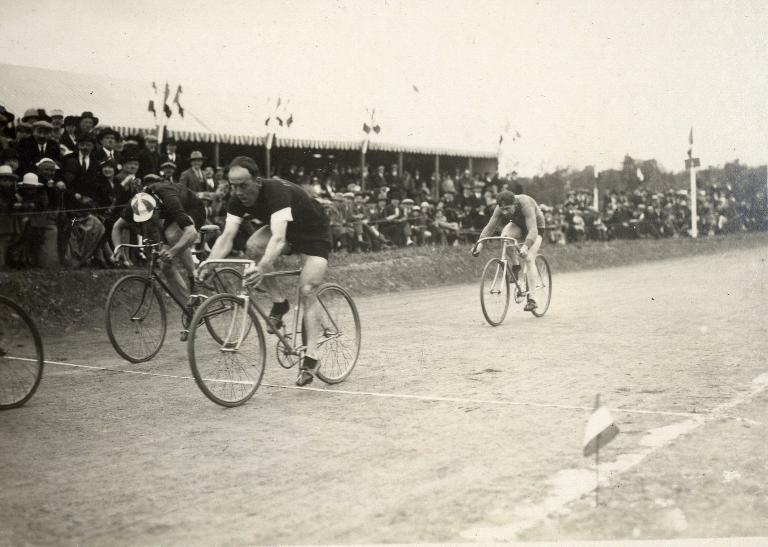 Inauguration du vélodrome de Bolumet : arrivée de la première course (9 mai 1926)Immatriculation