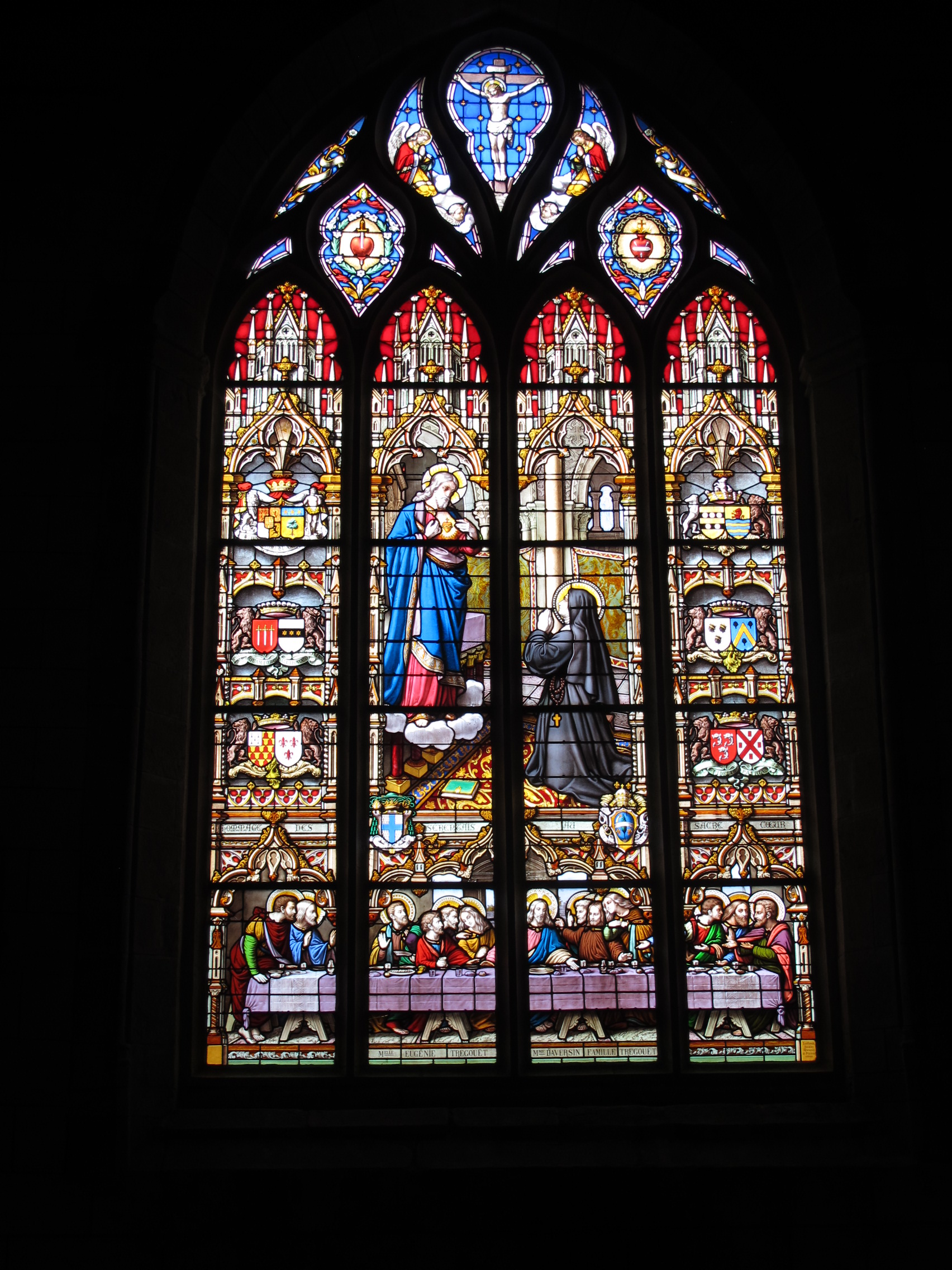 Verrière de la baie 2 : Apparition du Sacré-Cœur à Marguerite-Marie Alacoque et le Cène (état en 2015)Immatriculation