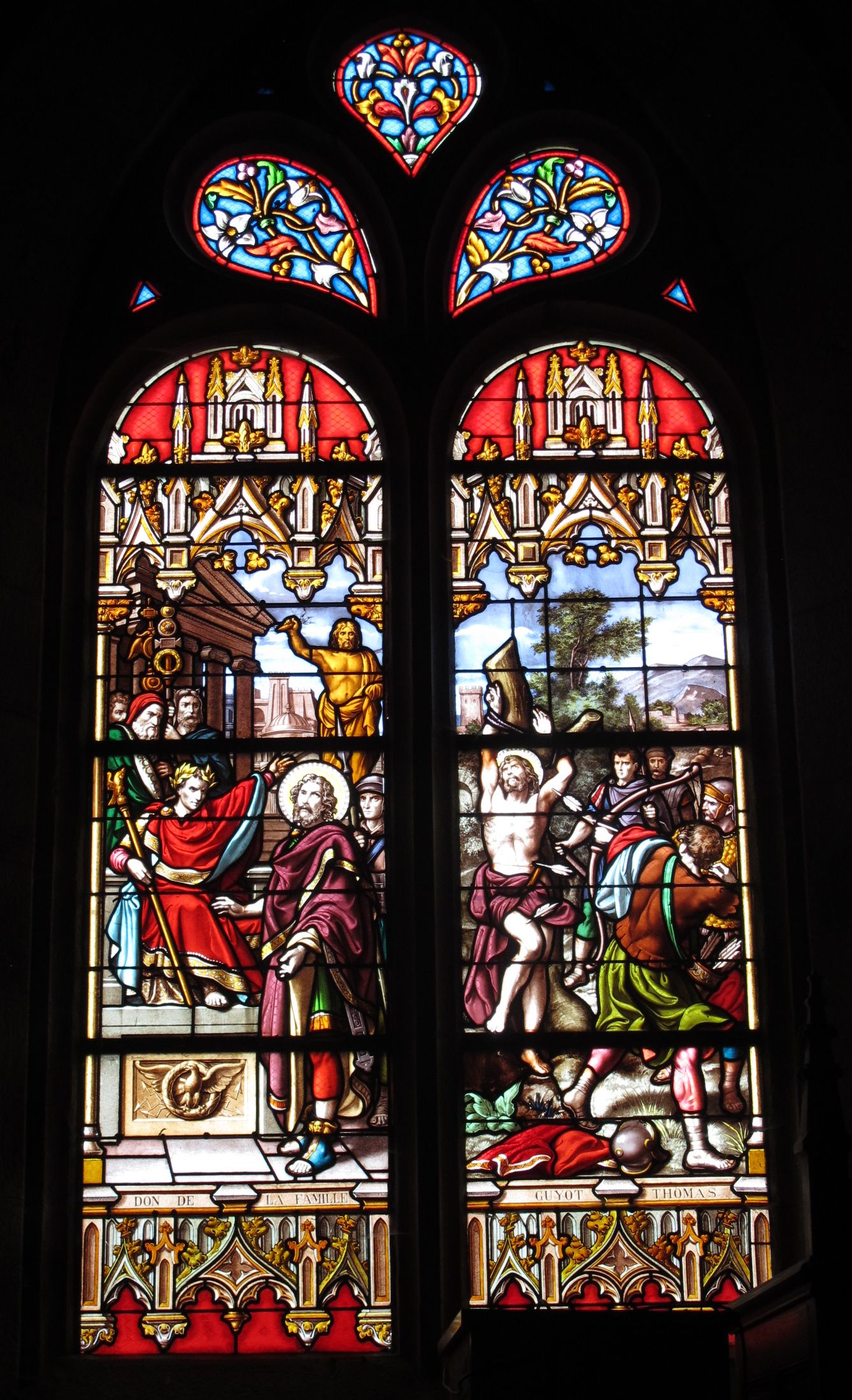 Verrière de la baie 10 : Martyre de saint Sébastien (état en 2015)Immatriculation
