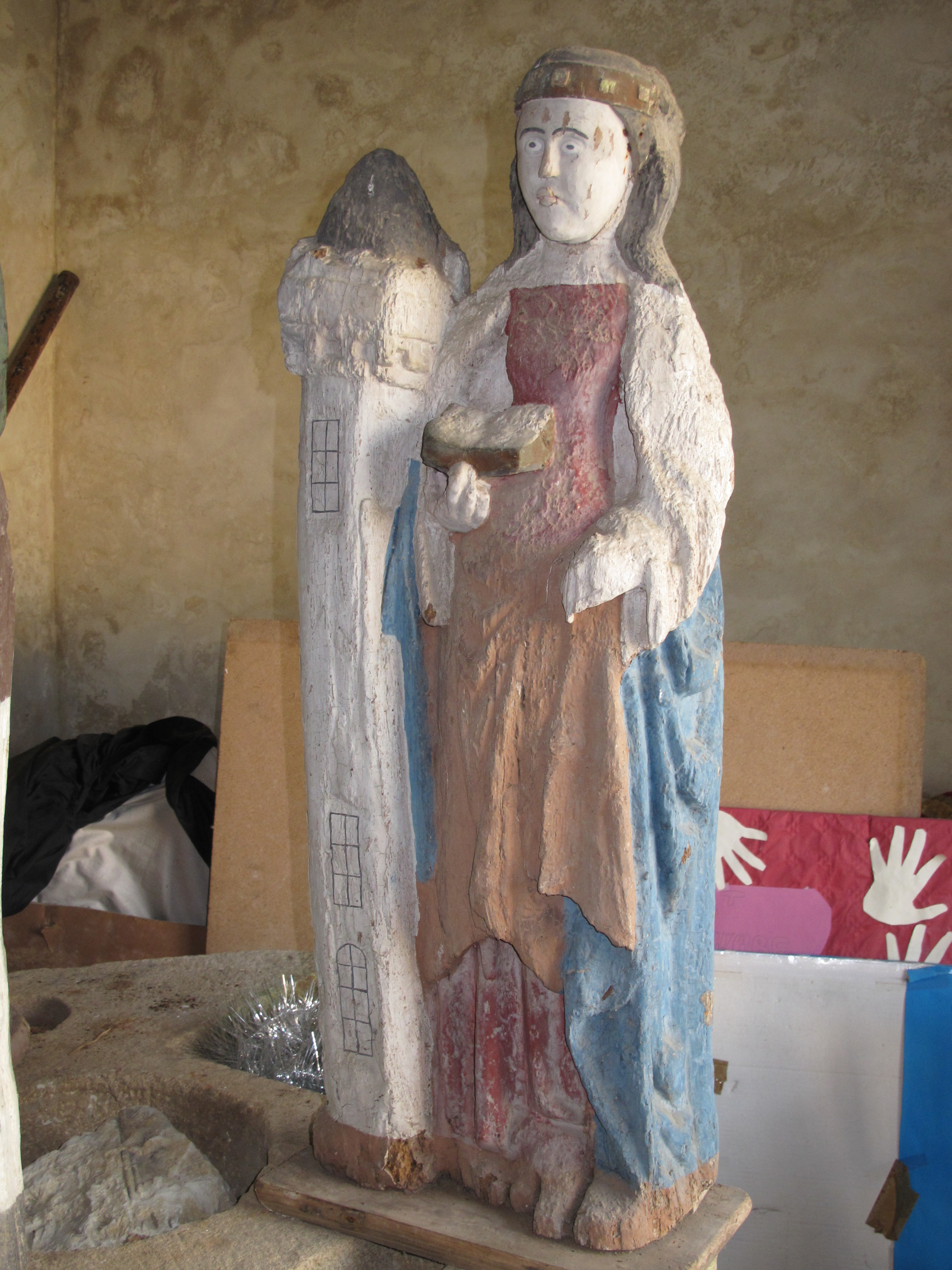 Statue (petite nature) : sainte Barbe, église paroissiale Saint-Barnabé (Langoëlan),