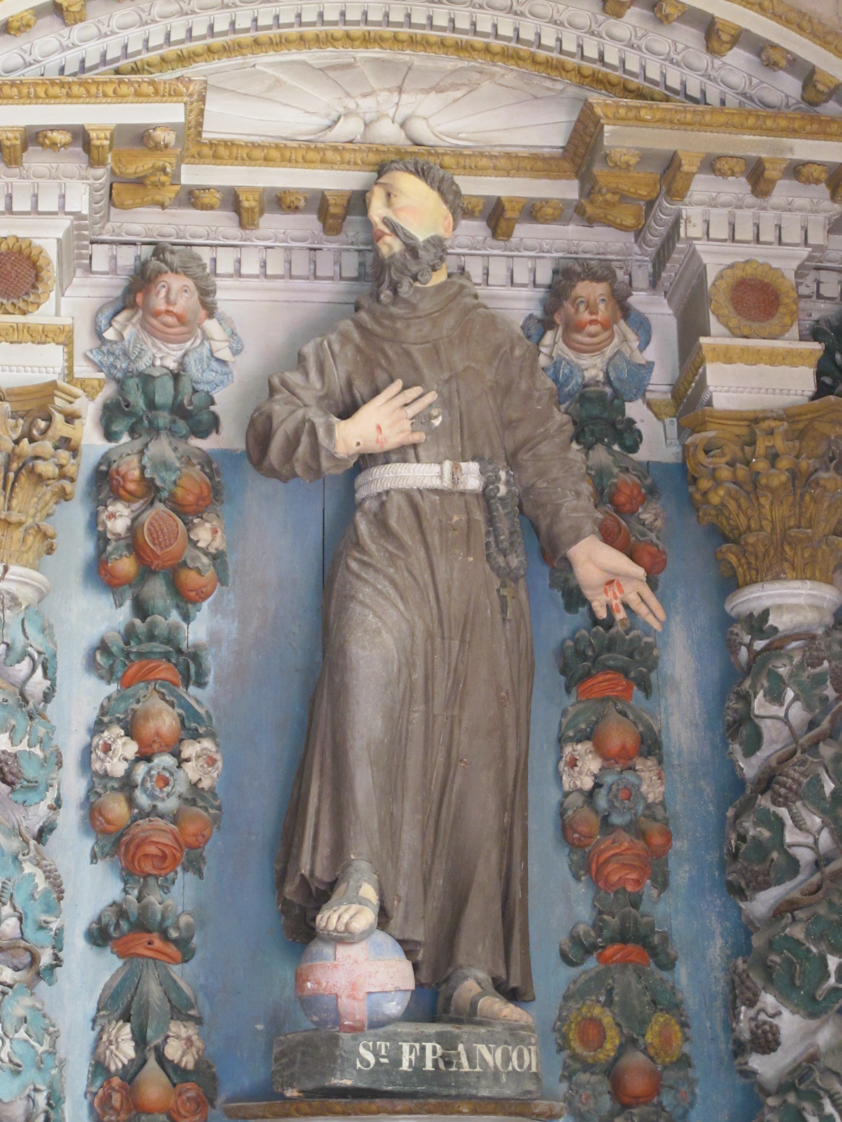 Statue (grandeur nature, d'applique) : saint François d'Assise, église paroissiale Saint-Barnabé (Langoëlan),