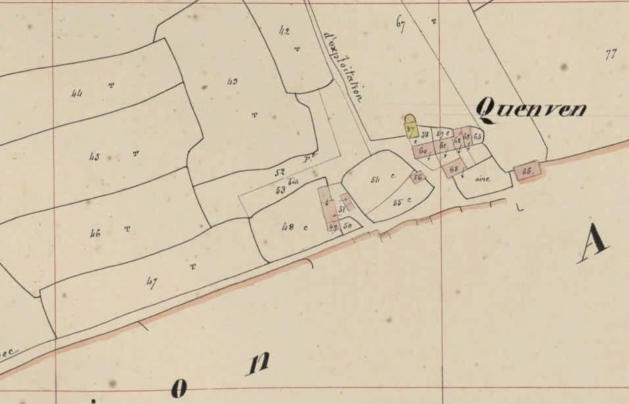 Quenven, partie est. Plan cadastral 1841, section B1 (AD Morbihan, 3P 161)Immatriculation