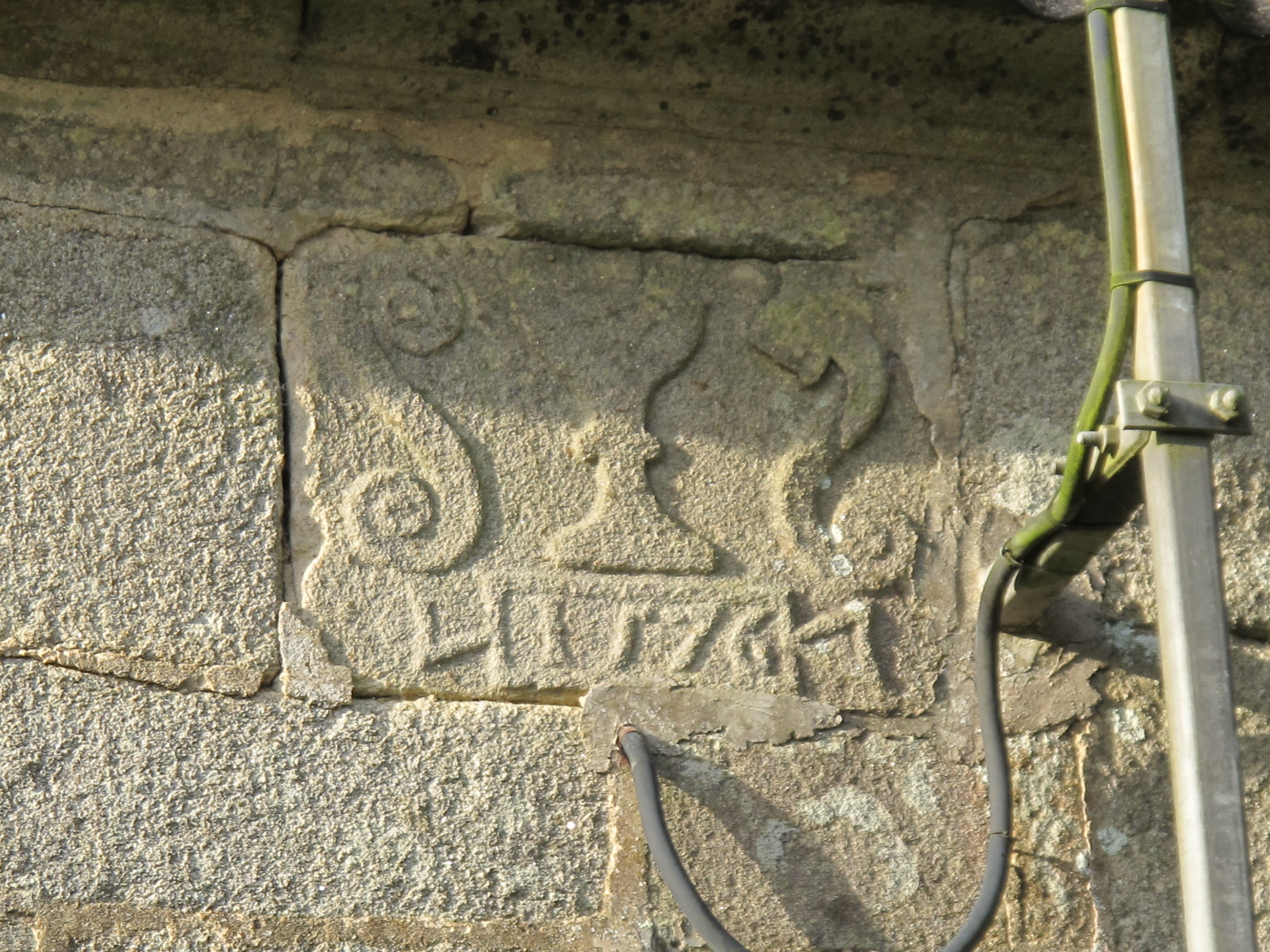 Elévation sud, détail de la date et du calice sculptés à droite de la porte hauteImmatriculation