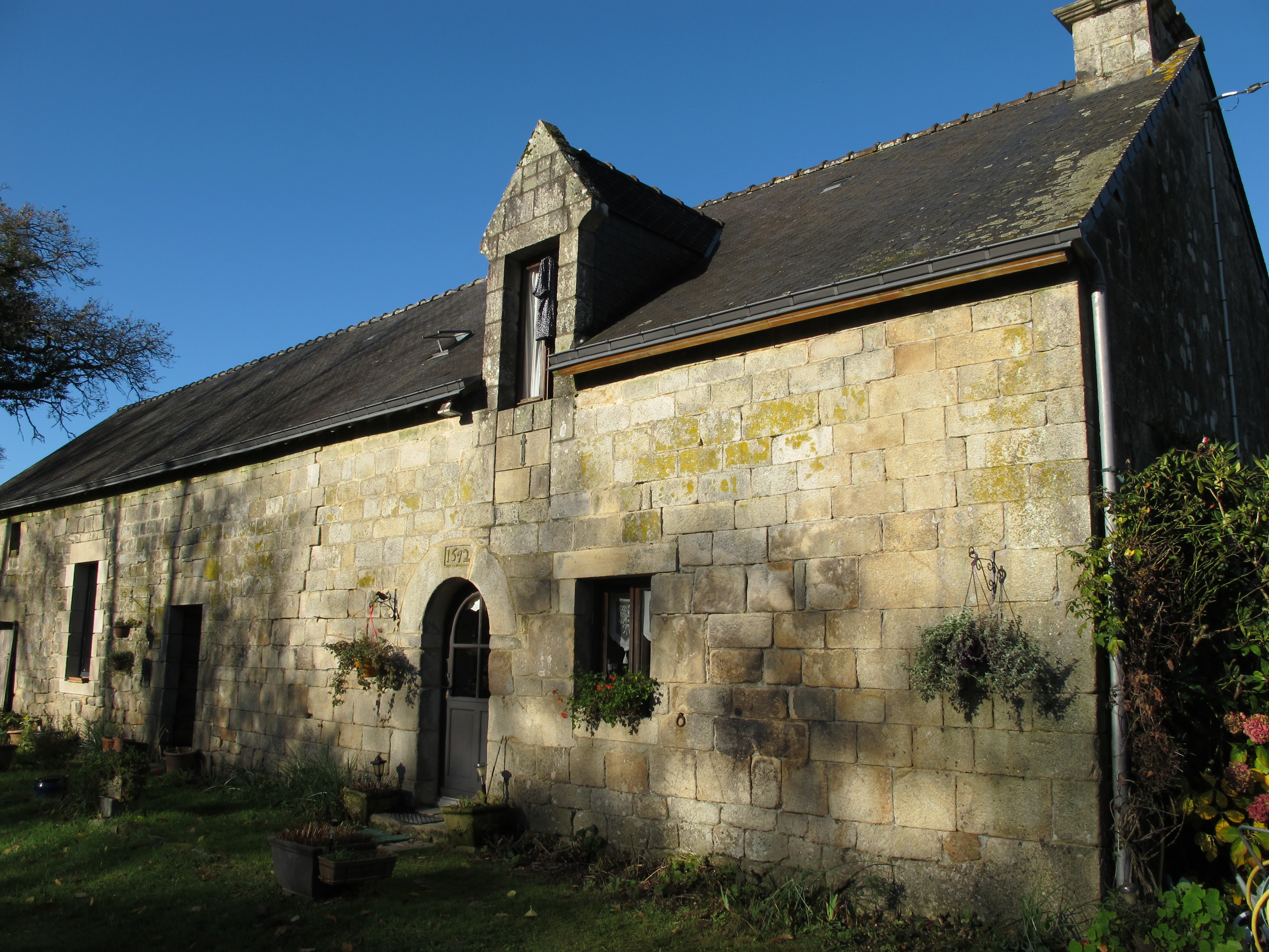 Carac Braz, partie ouest du village, ferme (A) ouest datée 1672, ancien logis-étable à deux portes, état en 2015Immatriculation