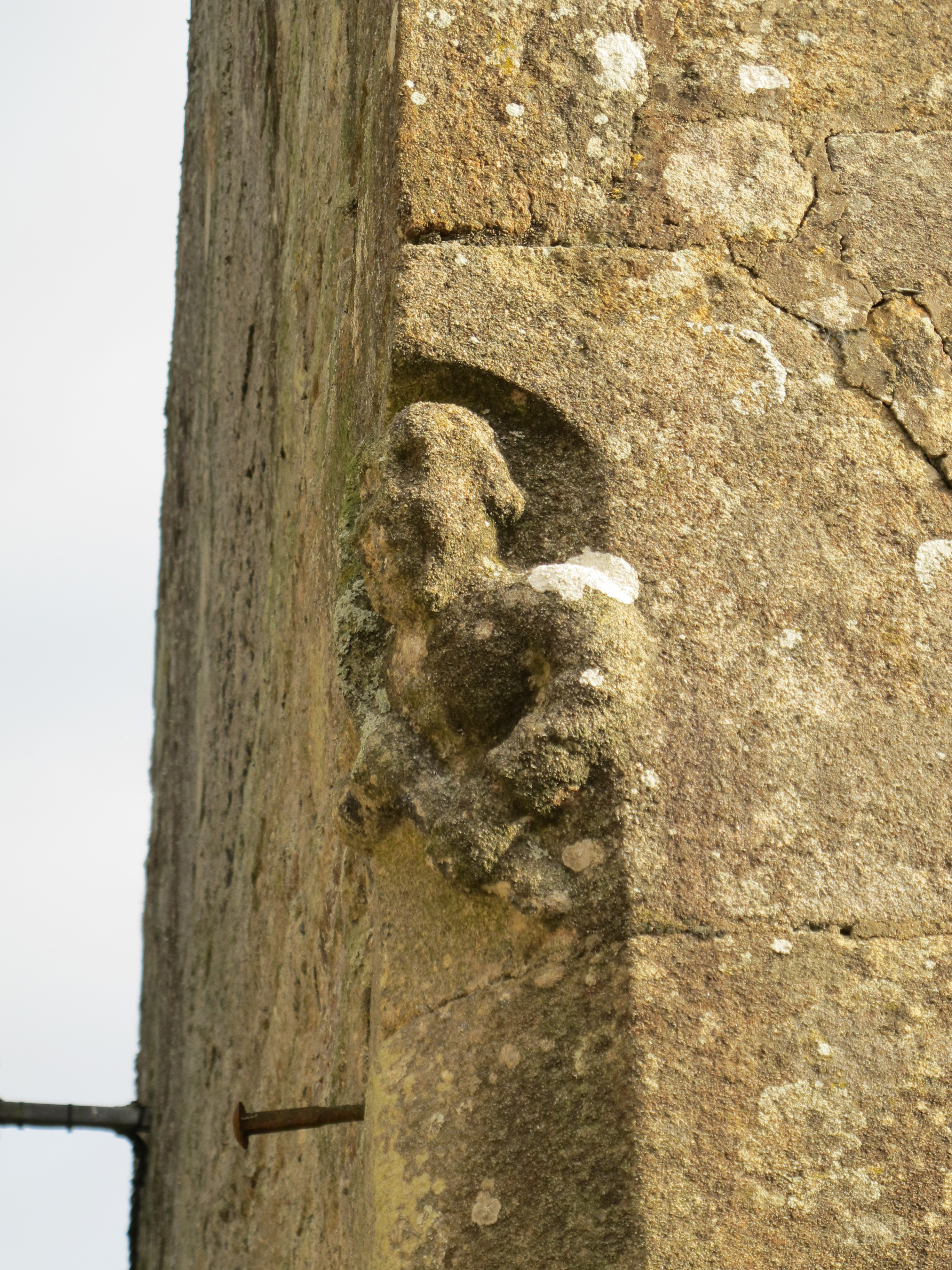 Ancien manoir de Sainte-Christine, détail de la sculpture ornant l'angle nord-ouest du logisImmatriculation