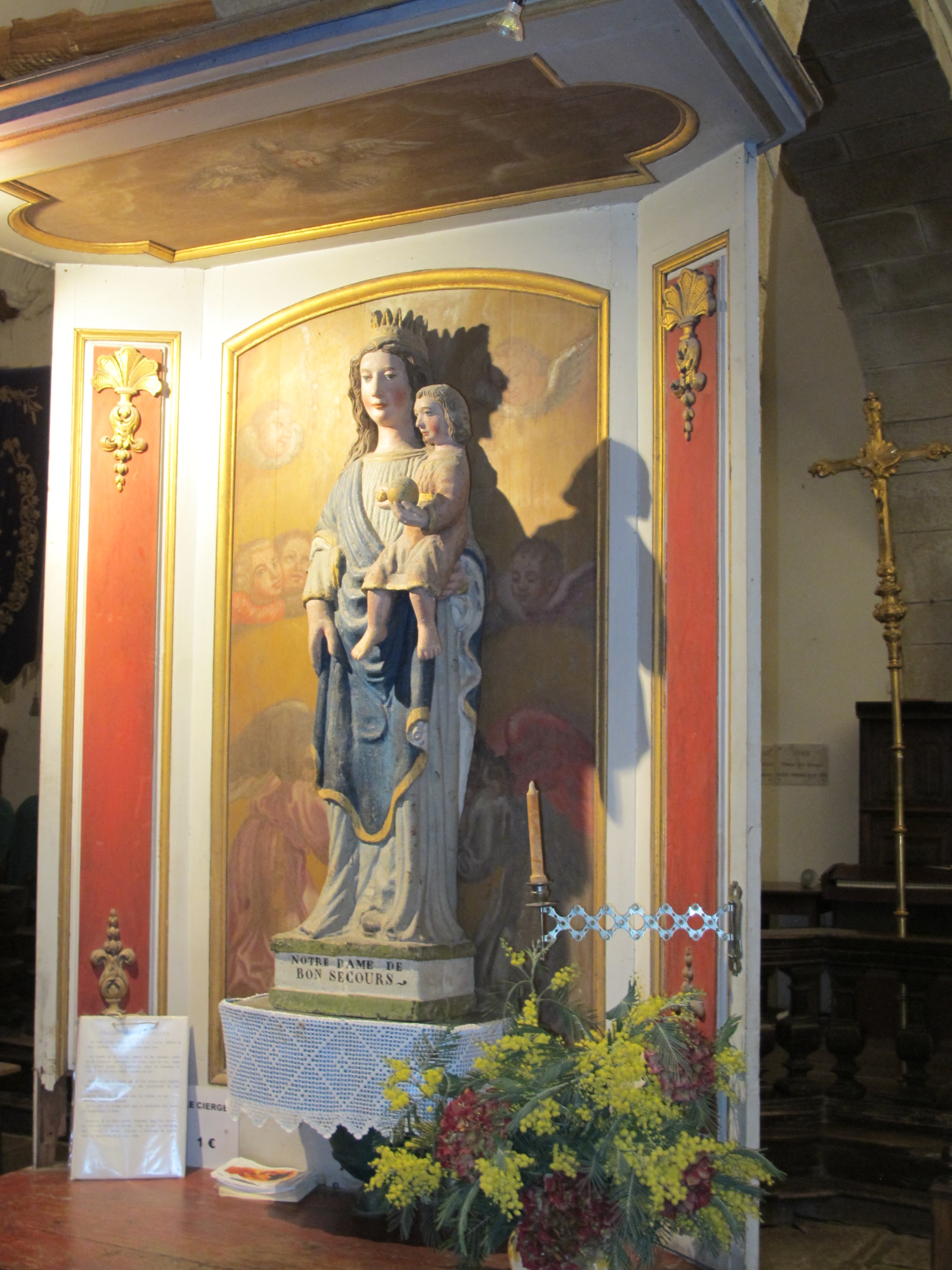 Statue (petite nature, d'applique) : Vierge à l'Enfant dite Notre-Dame de Bon Secours, église paroissiale Saint-Malo (Locmalo),