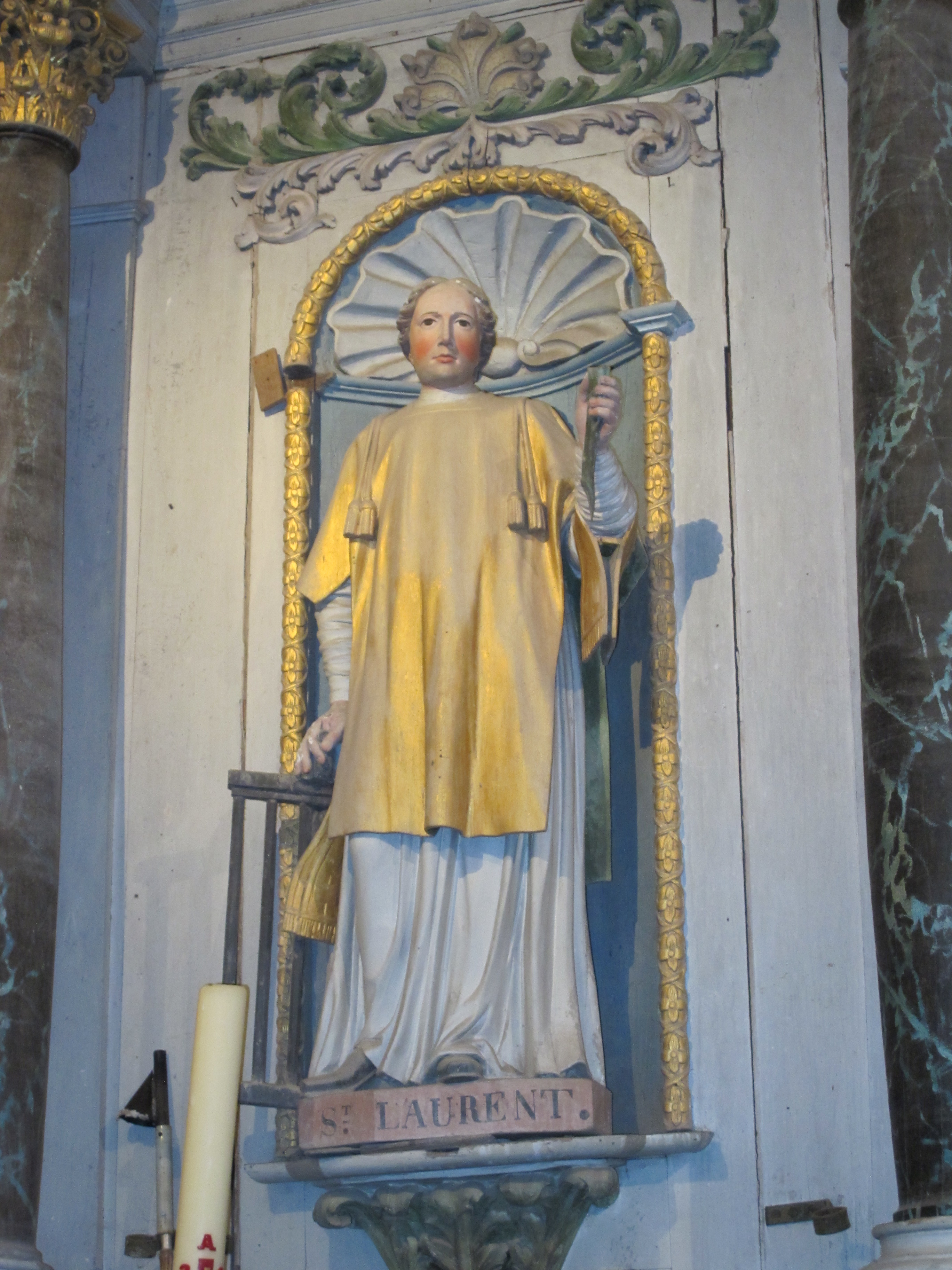 Statue (petite nature) : saint Laurent, église paroissiale Saint-Malo (Locmalo),