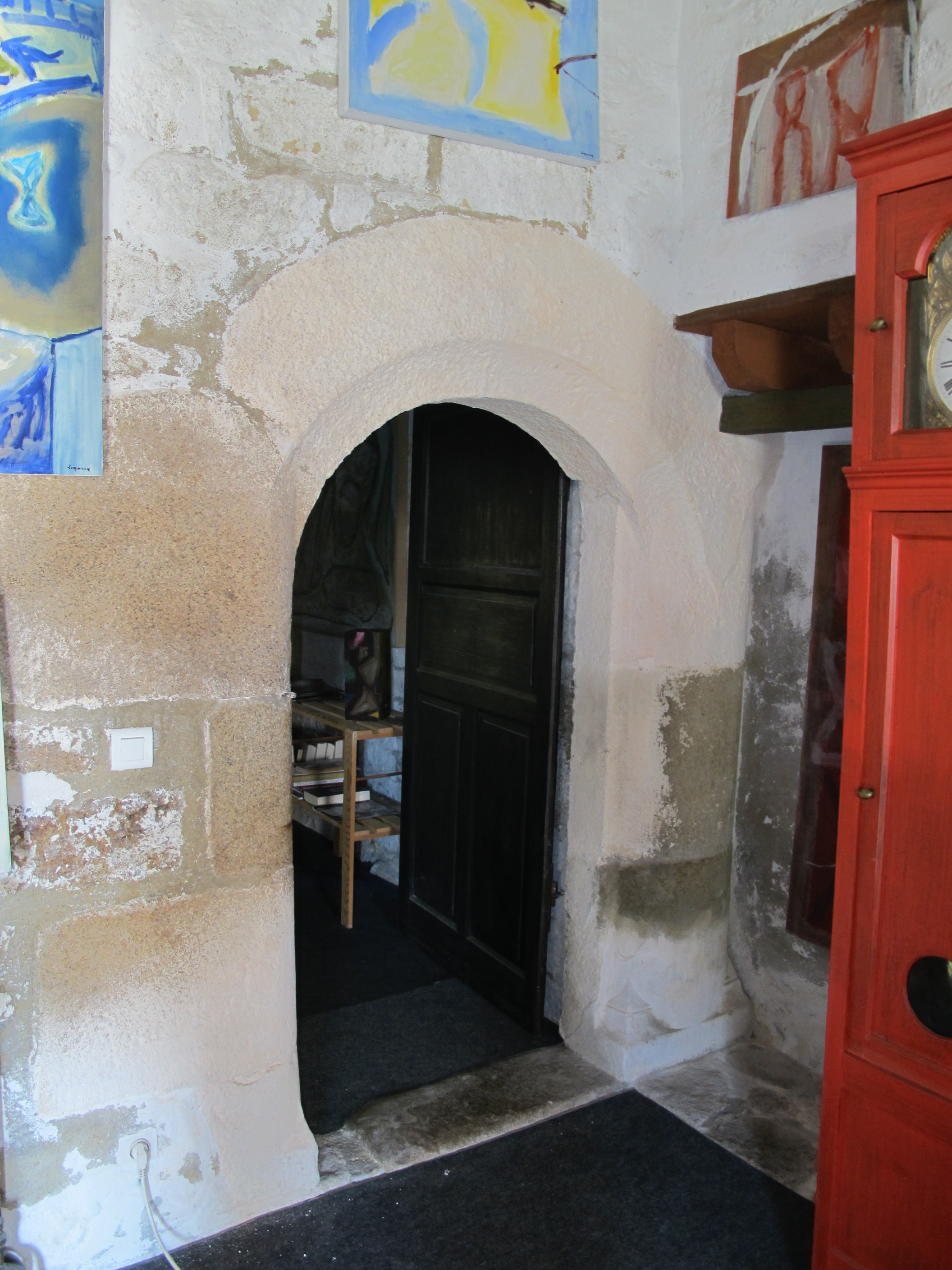 Salle, porte d'accès à l'escalier, état en 2015Immatriculation