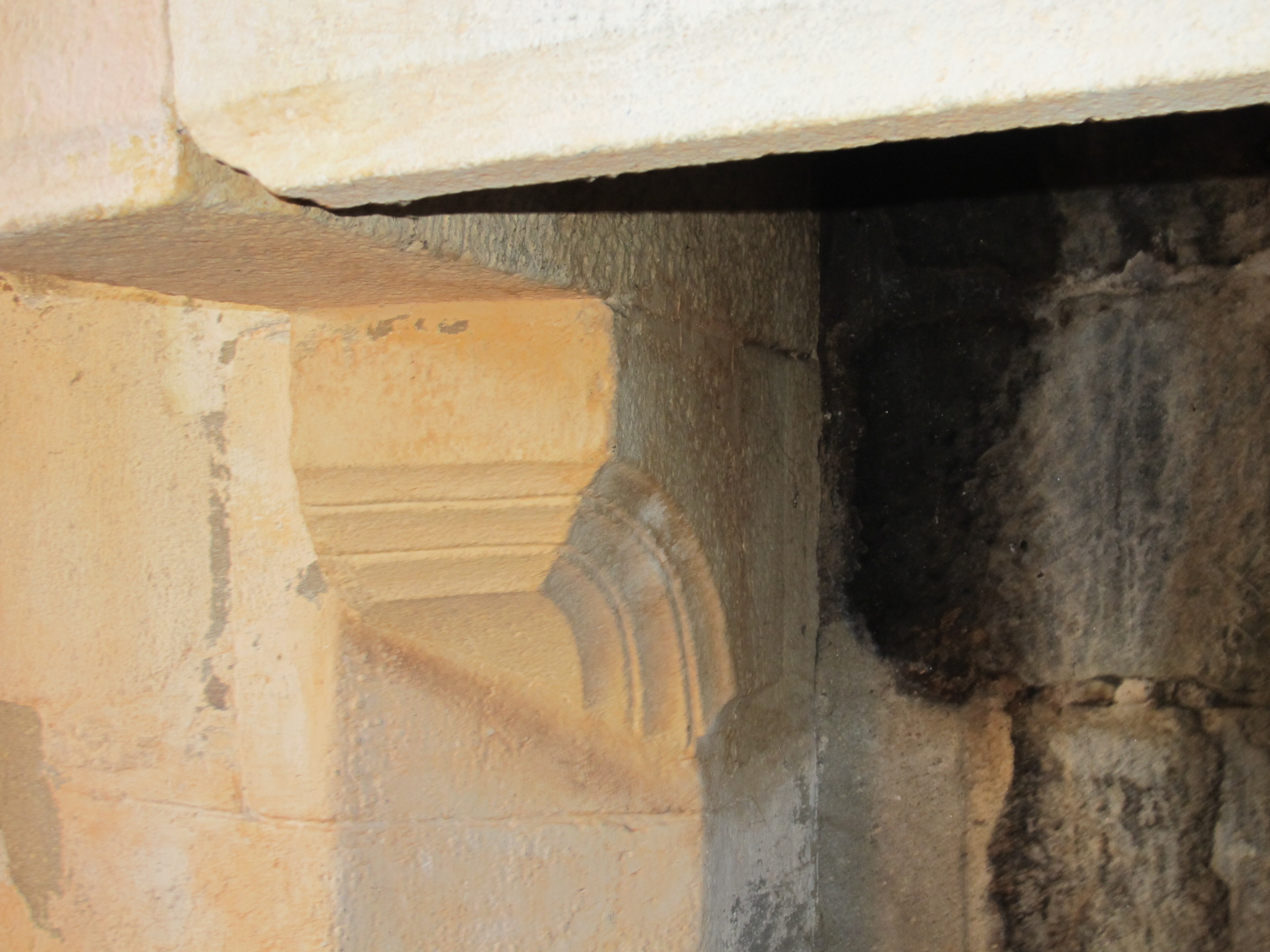 Cheminée de la salle, détail de la console gauche, état en 2015Immatriculation