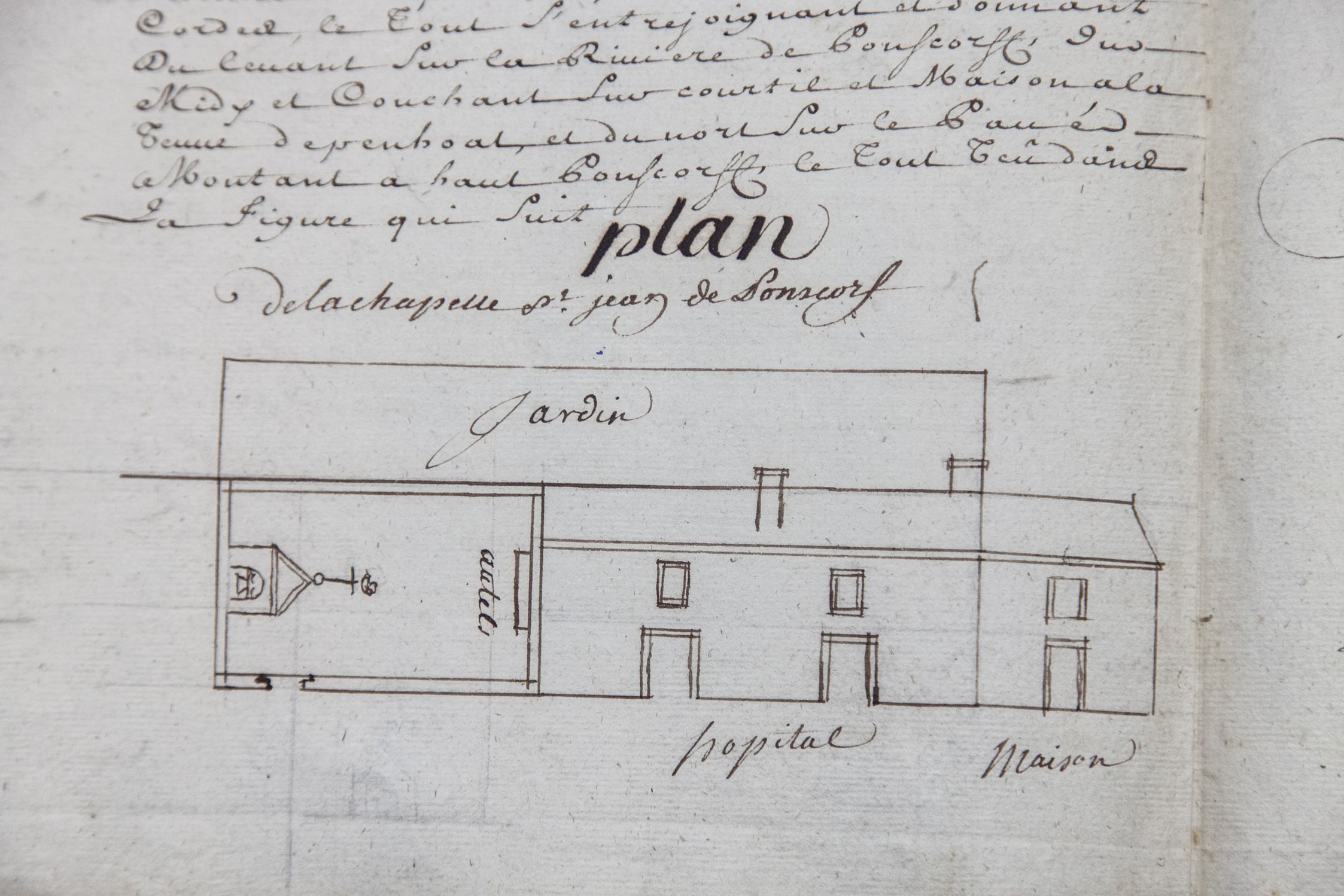 Plan de la chapelle Saint-Jean de Pont Scorff, 1730. (A.D. Côtes d’Armor, H582)Immatriculation