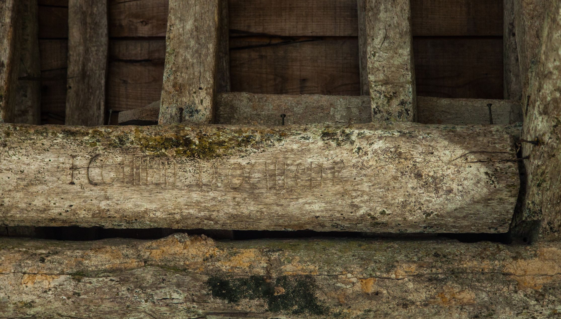 Inscription de la charpente du porche (bis), église Saint-Jean-Baptiste du Gorvello, SulniacImmatriculation
