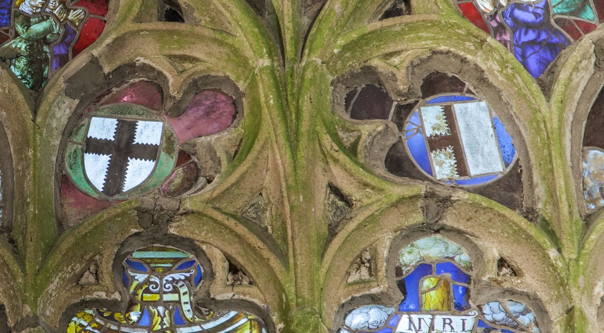 Détail des armoiries de la maîtresse-vitreImmatriculation