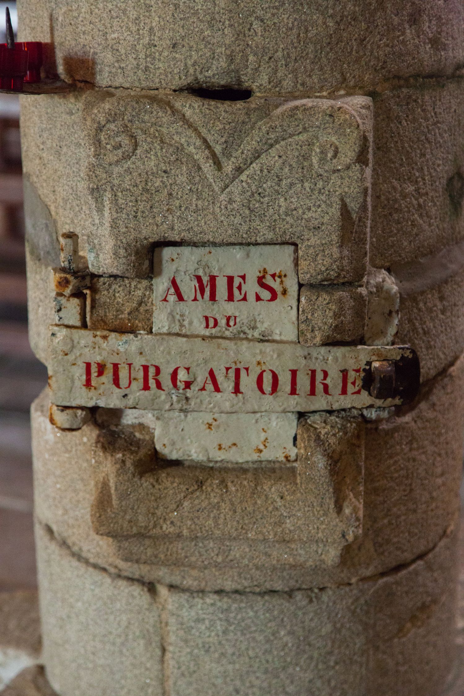 Détail du tronc des offrandes, Eglise Saint-Jean-Baptiste, Le GuernoImmatriculation