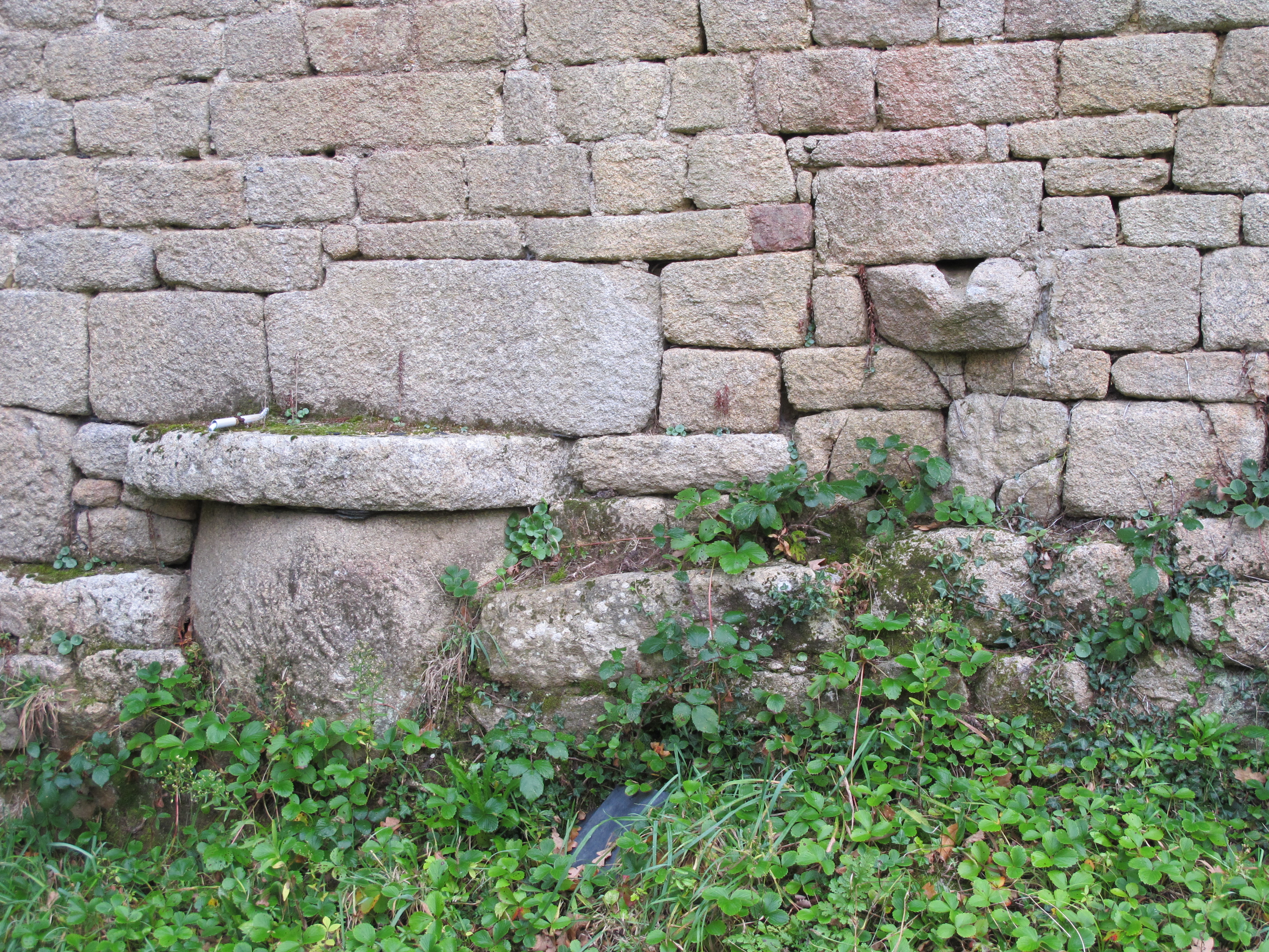 Aile de retour, mur ouest, cuve du saloir et canal d'évacuation de l'évier, état en 2015Immatriculation