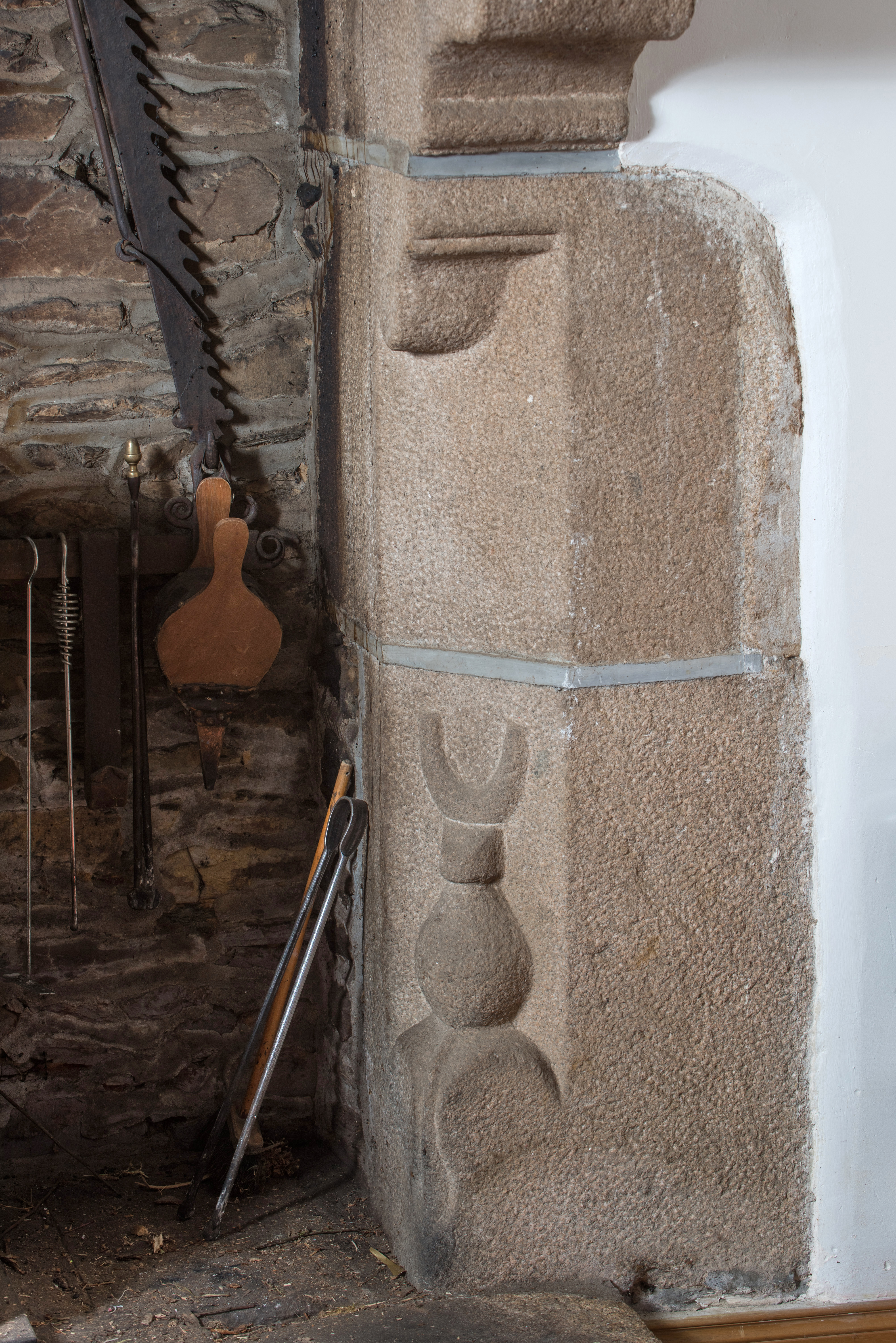 Nouveau logis. Rez-de-chaussée. Cheminée du 15e siècle. Détail d'un piédroitImmatriculation