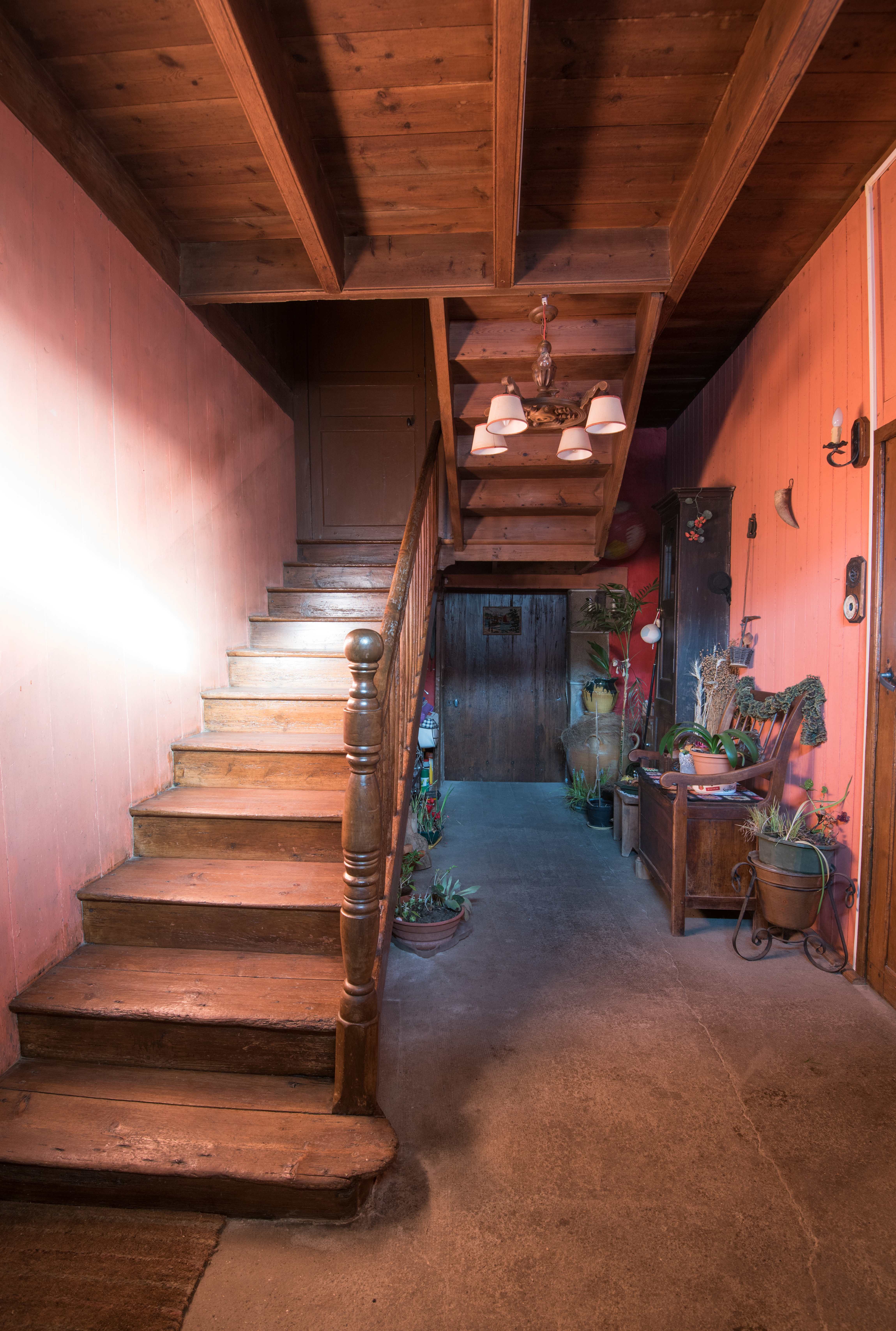 Couloir d'entrée. Escalier et porte nord d'accès à l'appentis nord. Vue généraleImmatriculation