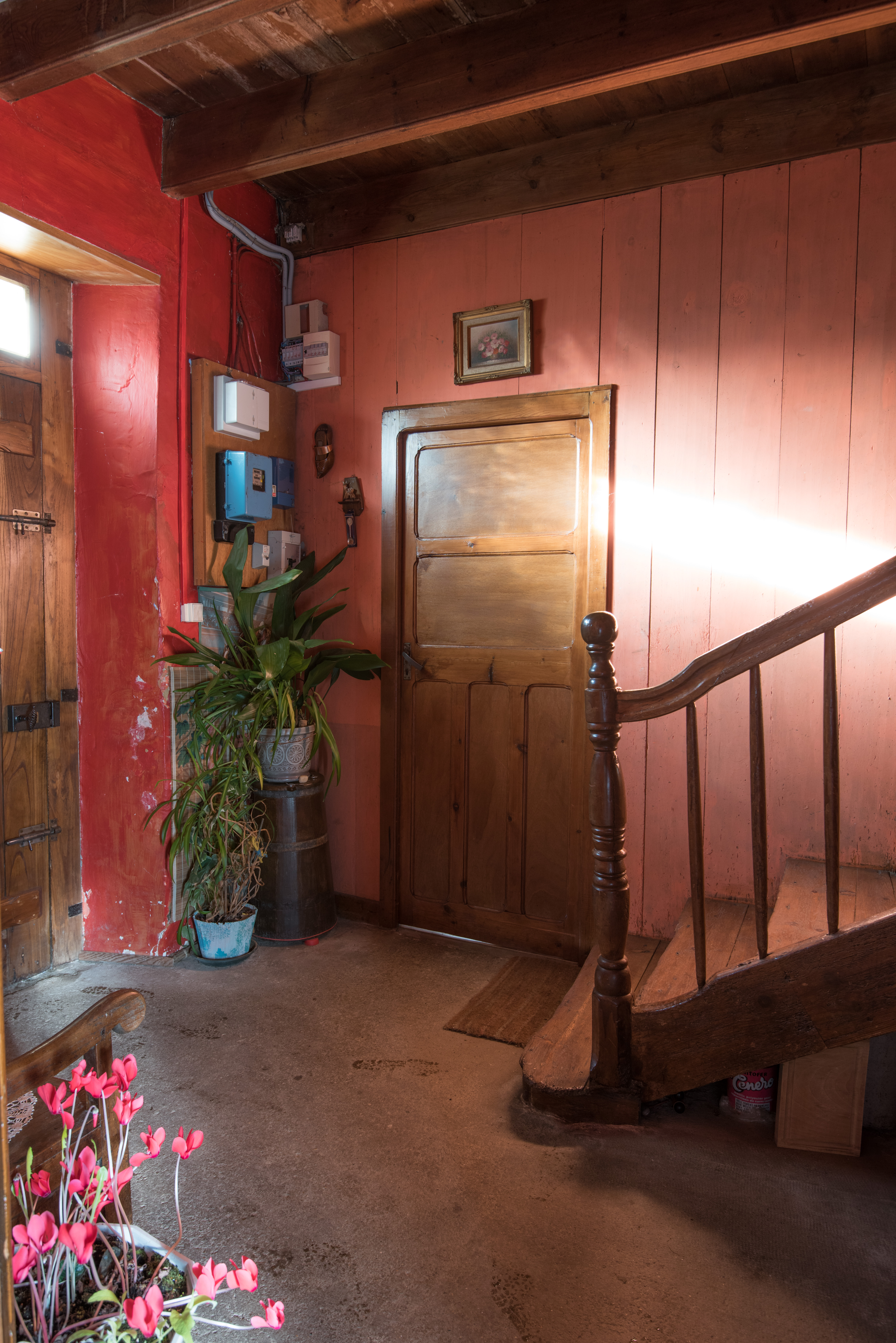Couloir d'entrée. Départ de l'escalier et porte de la chambreImmatriculation
