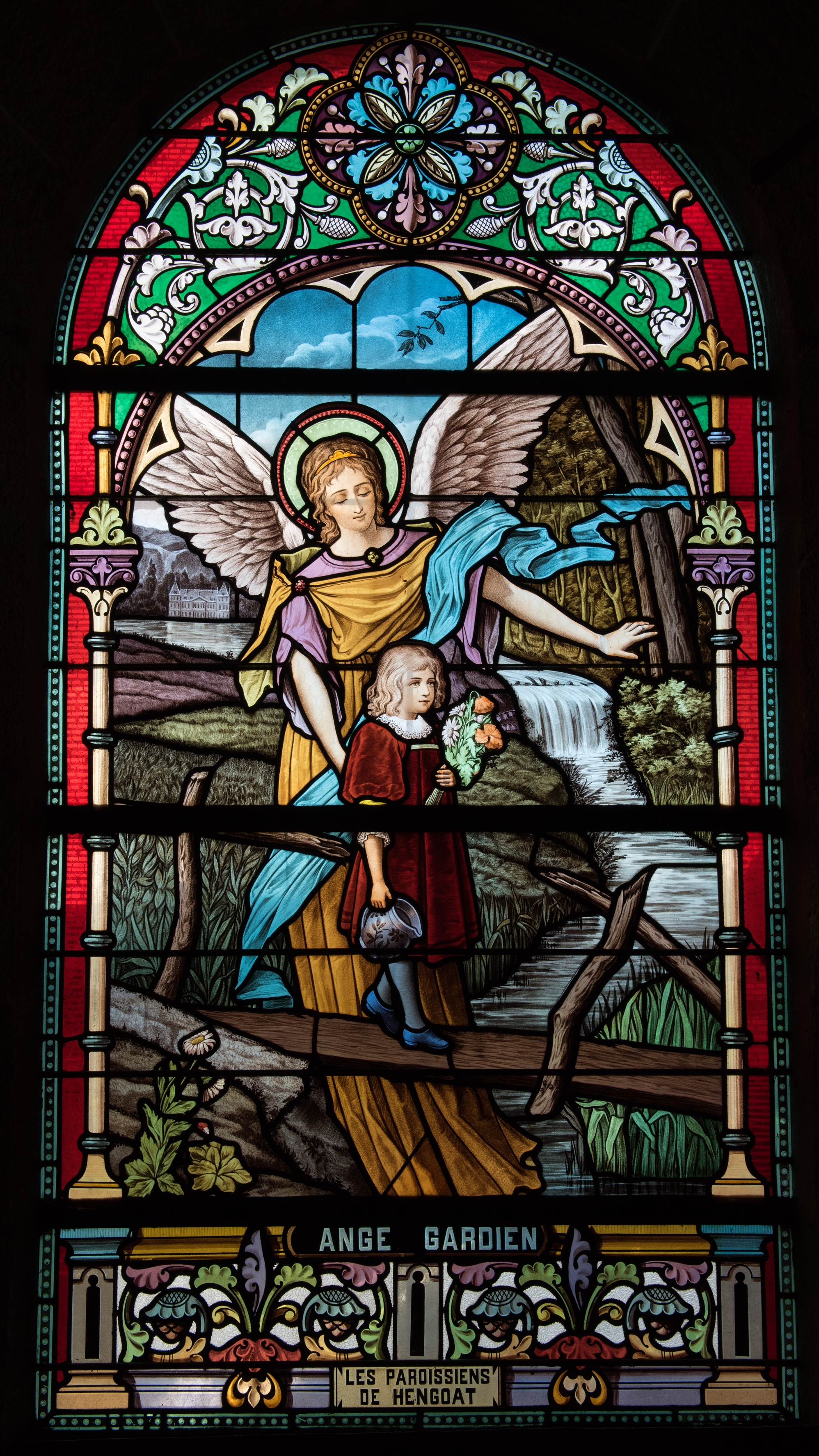 Verrière. Ange gardien. Bessac, maître-verrier (Grenoble), 1913-1914. Vue généraleImmatriculation