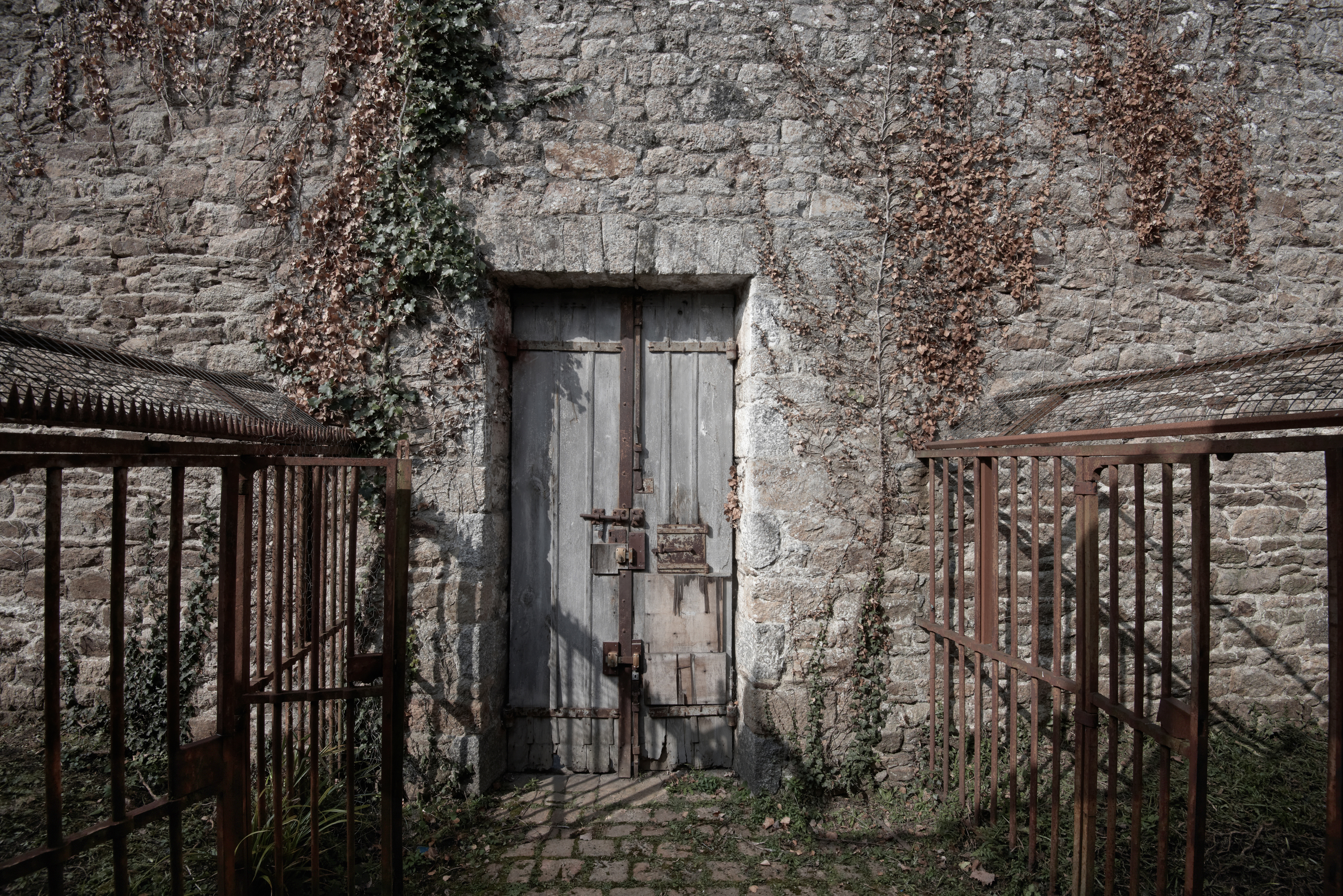 Vue de la porte de la prison donnant sur la rue Pavie depuis le chemin de rondeImmatriculation