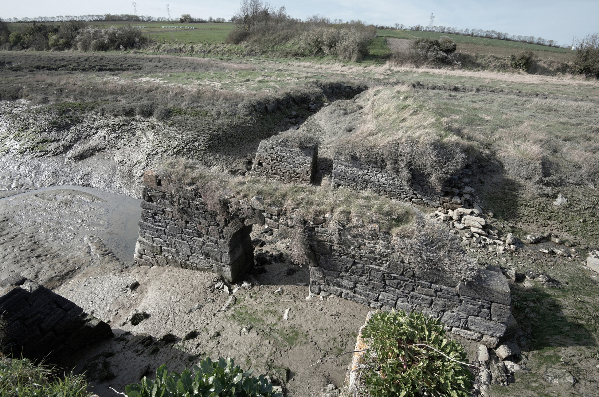 Moulin de mer : vestiges des soubassements à marée basseImmatriculation