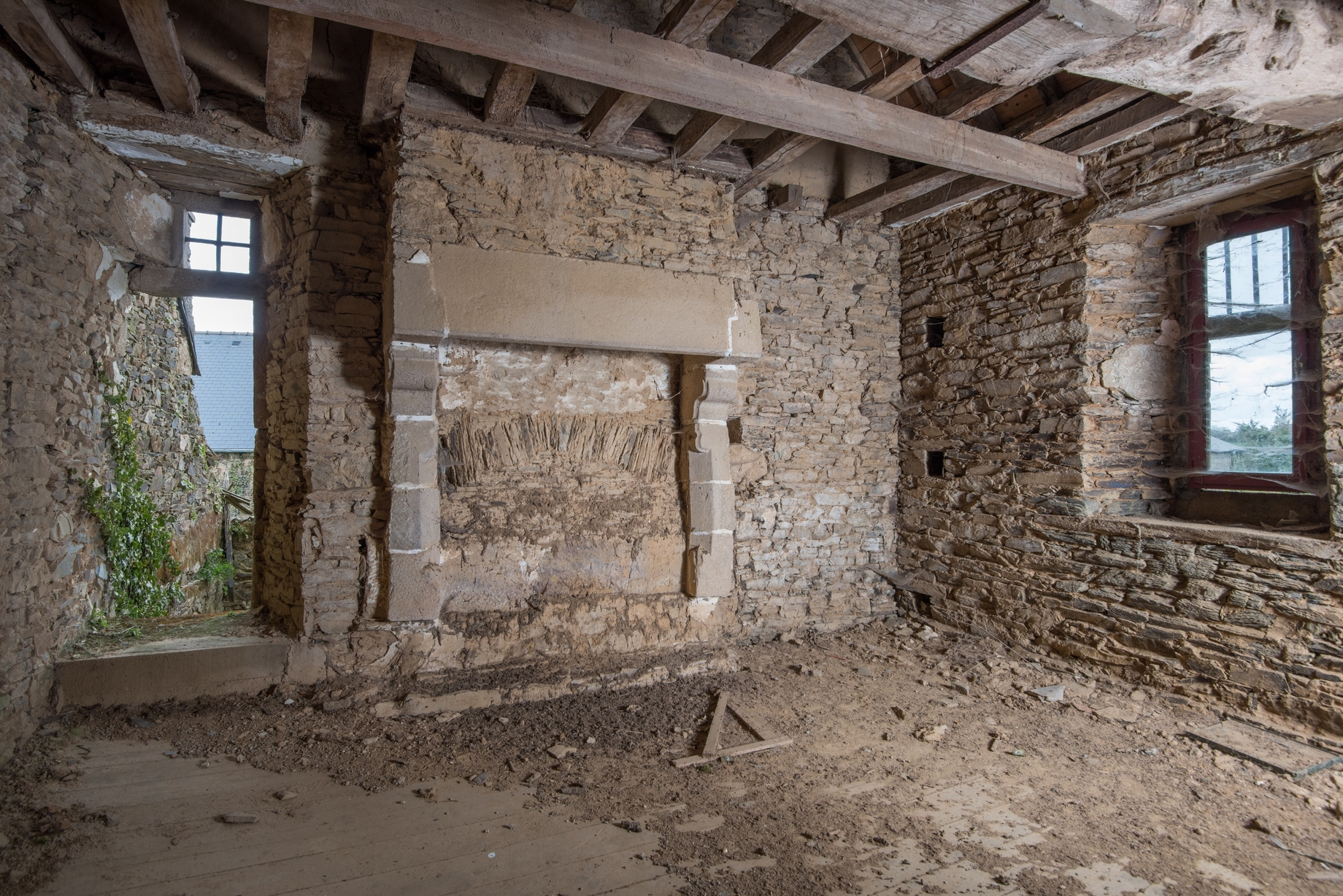 Salle haute. Vue générale avec cheminée et fenêtre associéesImmatriculation
