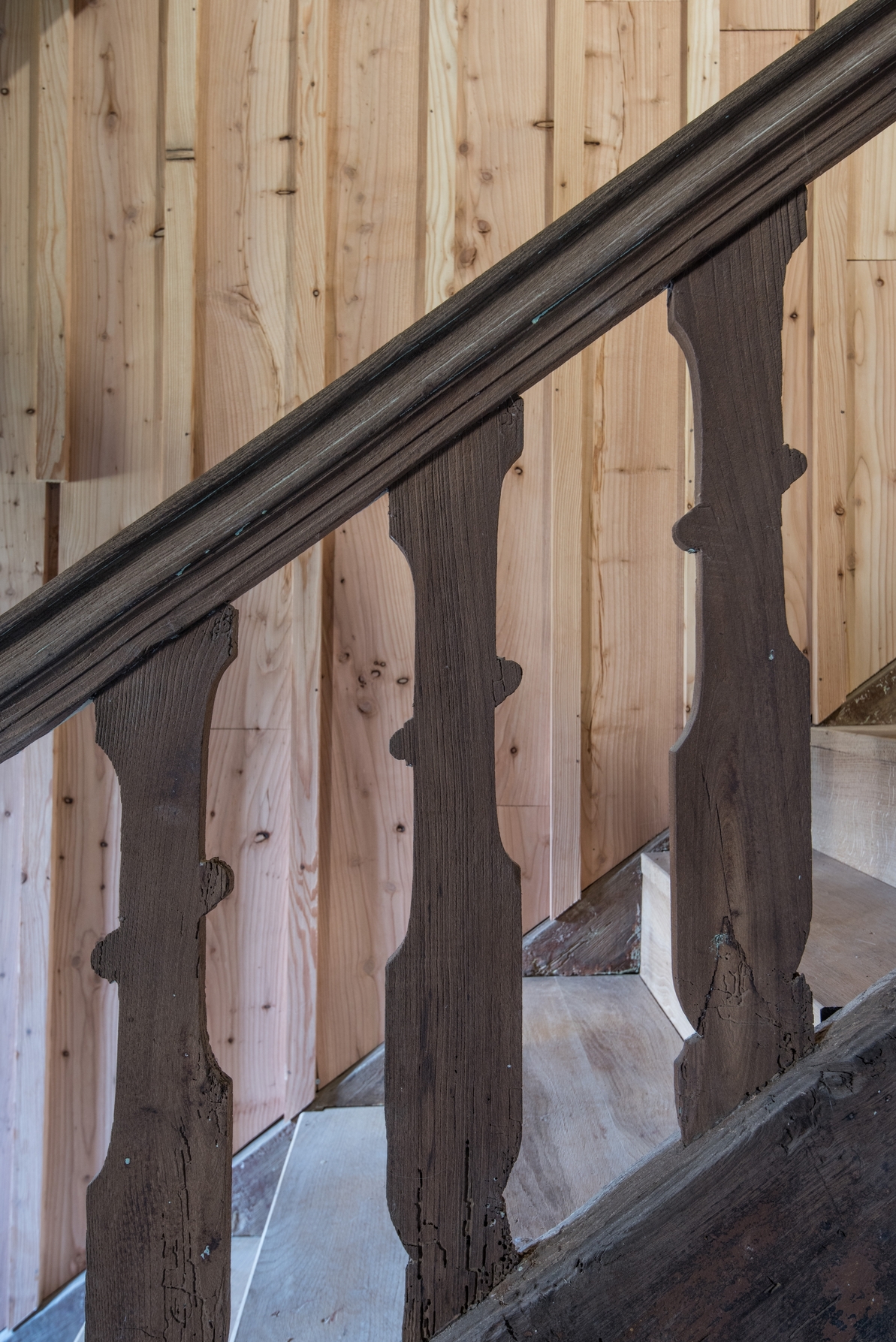 Escalier dans oeuvre en bois. Détail de balustresImmatriculation