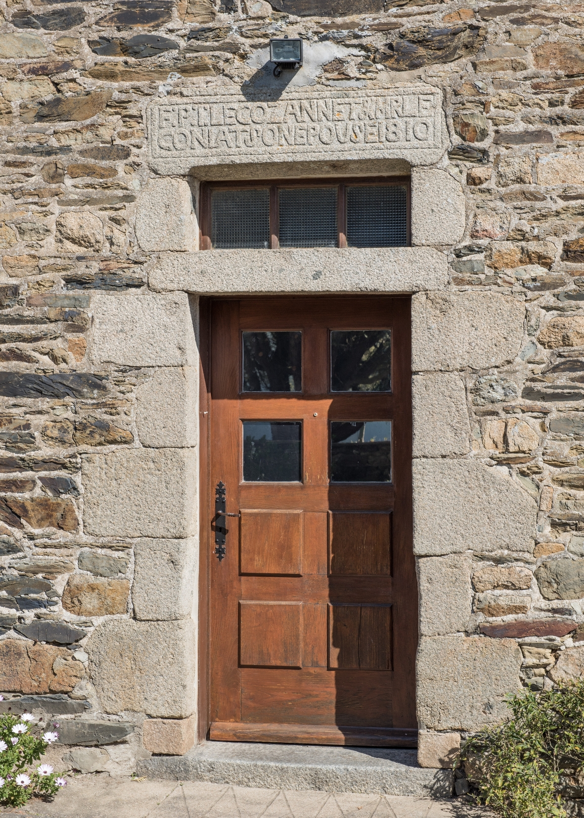Façade sud. Détail de la porte d'entréeImmatriculation