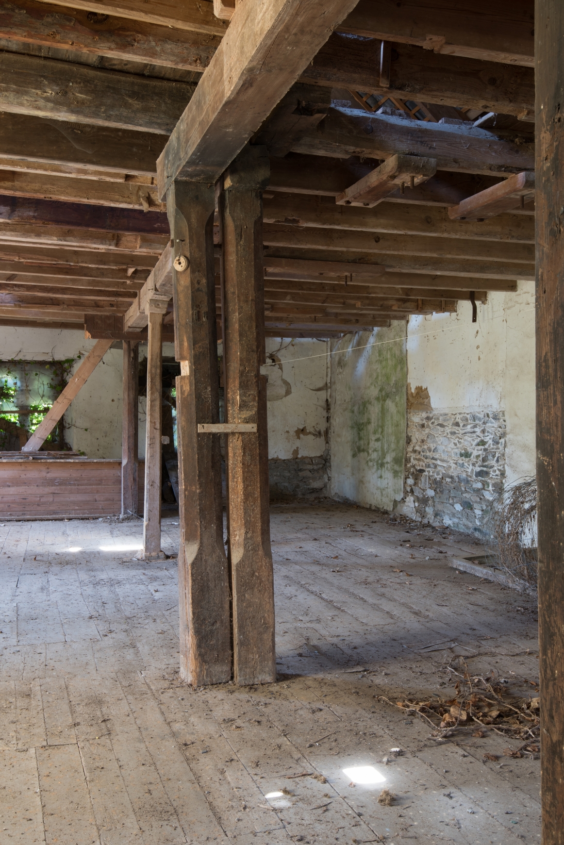 Moulin. Deuxième étage. Détail des piliers de soutien du plafondImmatriculation