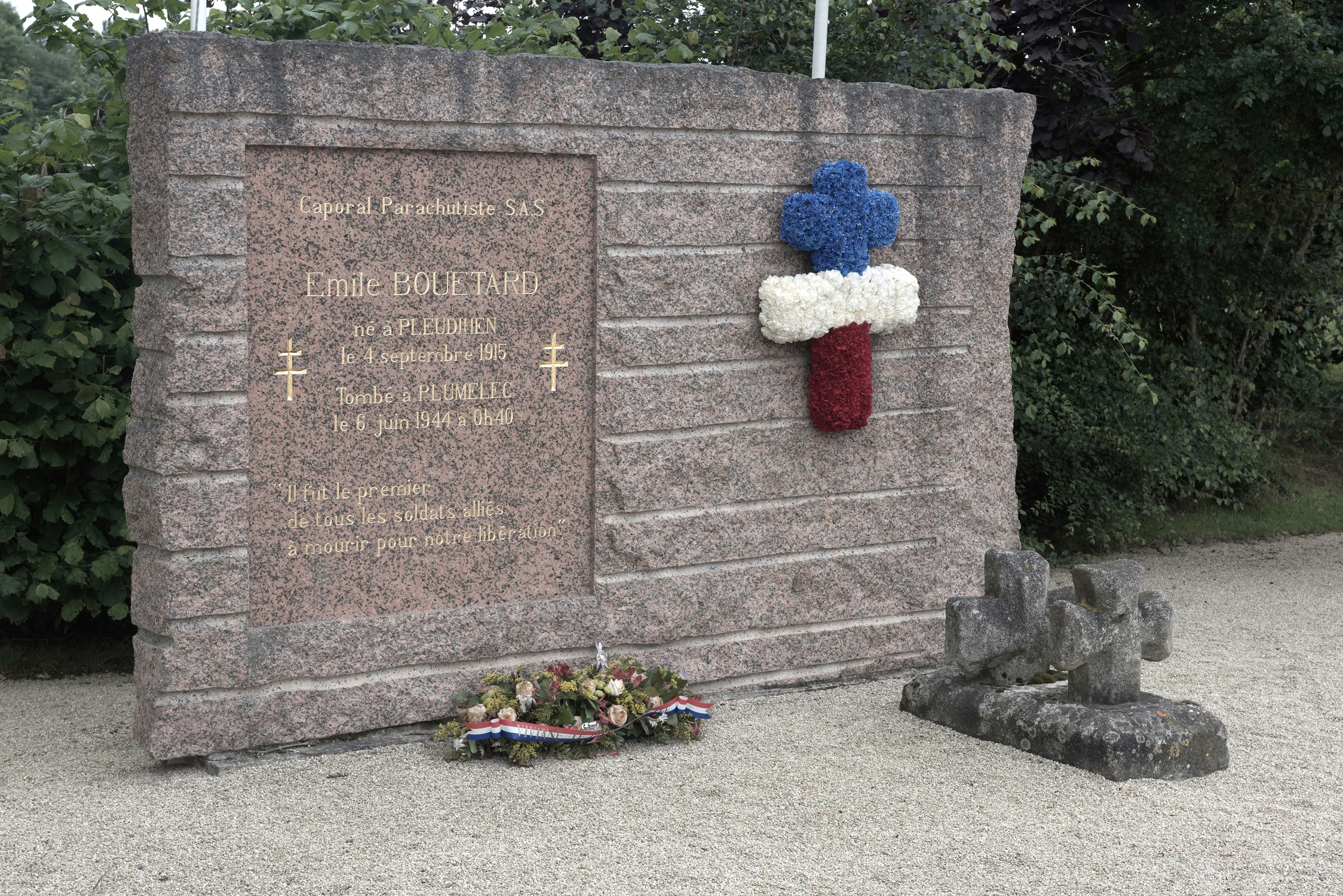 Au carrefour de Pellan, croix dite Saget, et stèle en mémoire du caporal Emile Bouétard, décédé le 6 juin 1944Immatriculation