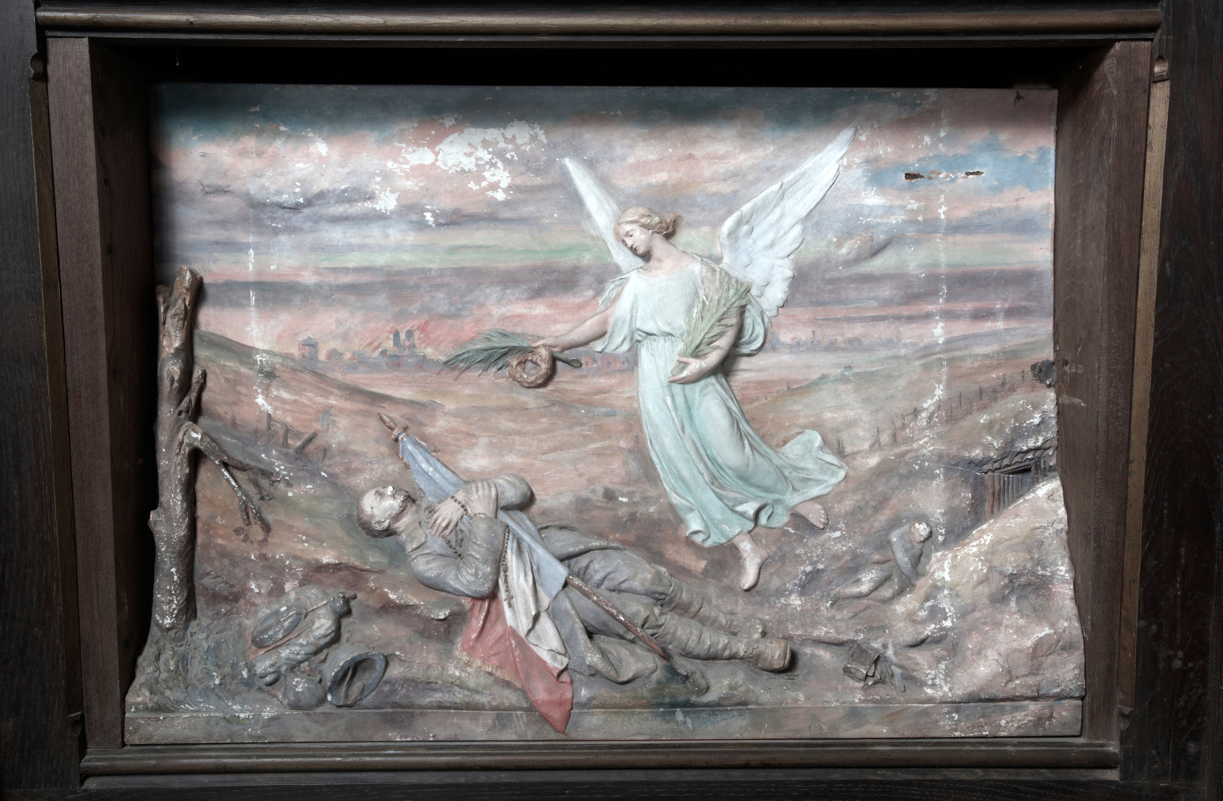 Kermaria-Sulard, le bourg : église paroissiale Notre-Dame-de-la-Joie, vue intérieure, représentation de la Première Guerre mondialeImmatriculation
