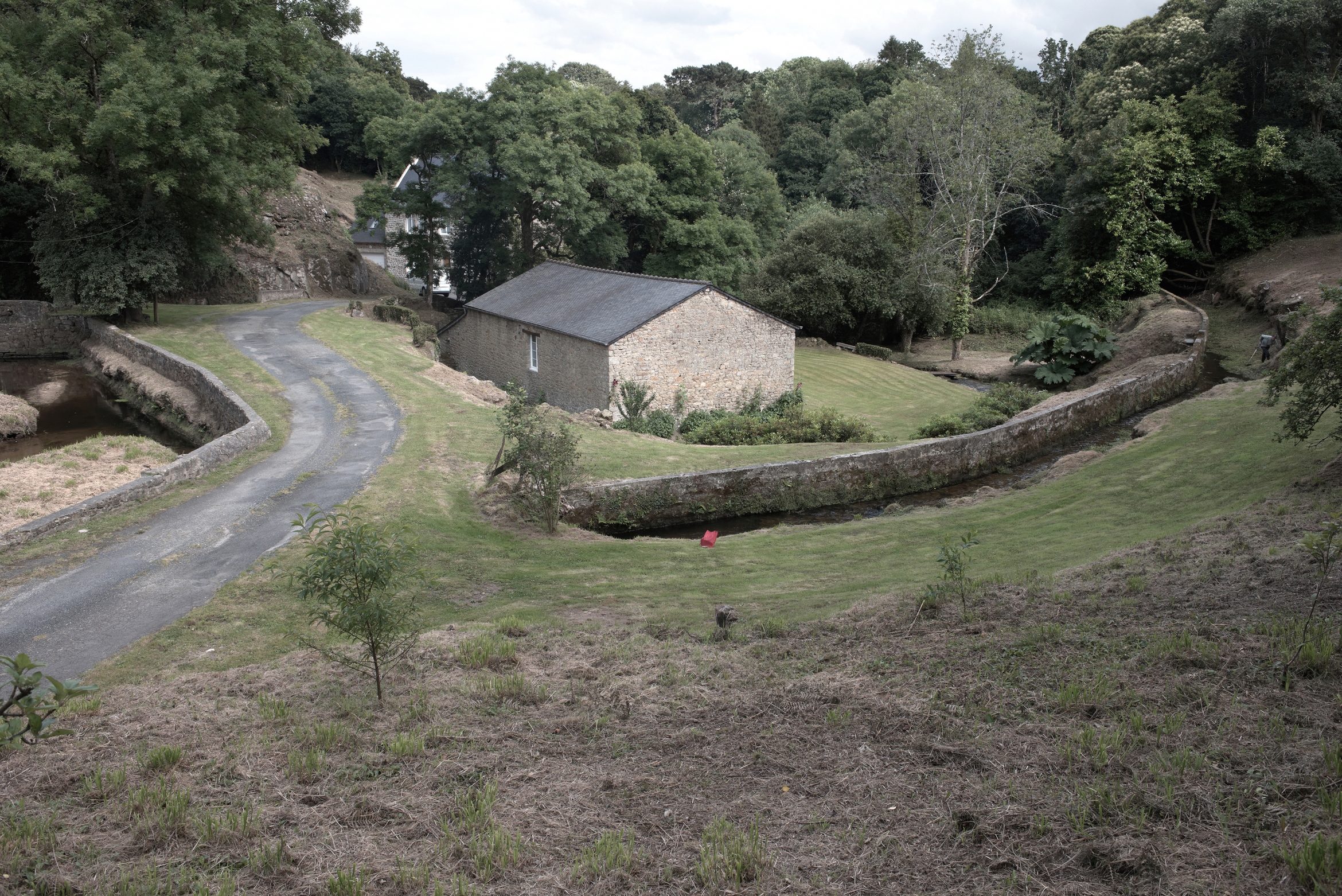 Digue, bief de dérivation et teillage. Vue générale nord-ouestImmatriculation