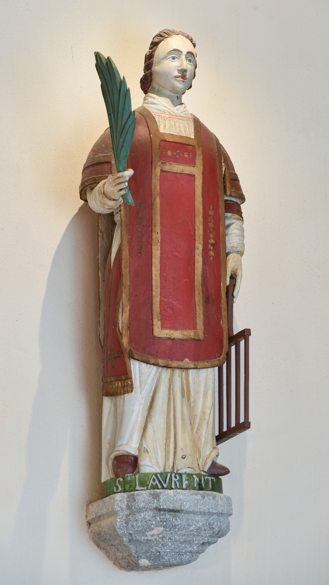 Statue de Saint Laurent, en bois polychrome, éléments assemblés par chevillageImmatriculation