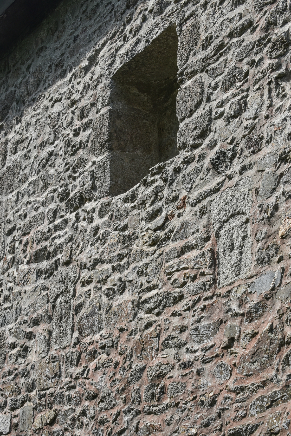 Détails des blasons seigneuriaux bûchés, façade est du chevet à pans coupésImmatriculation