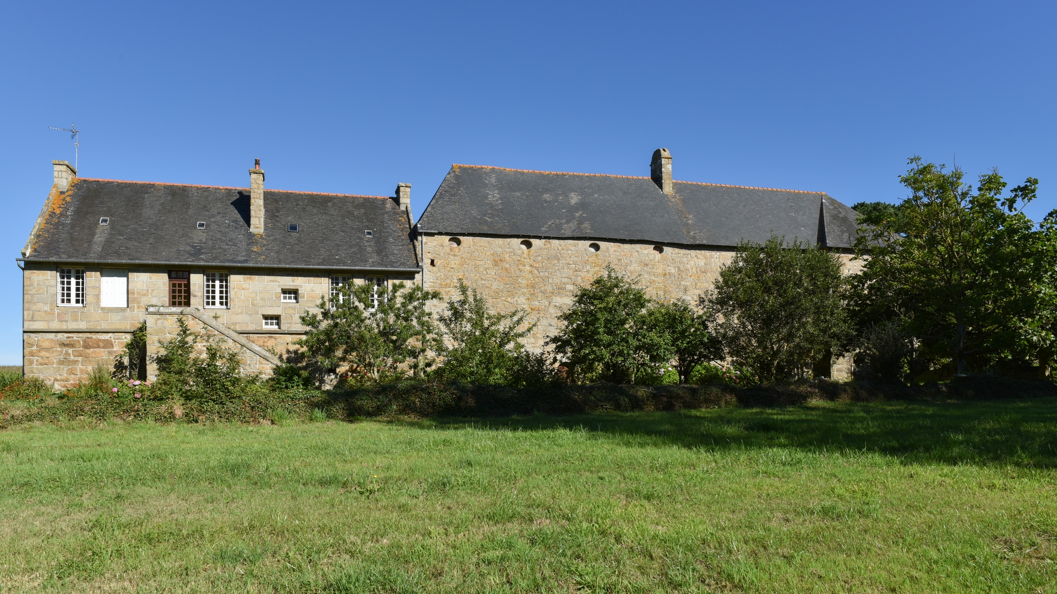 Château de Kerham (Camlez) - Camlez, Kerham : façades arrières du nouveau logis et de la remise ouest, vue générale estImmatriculation