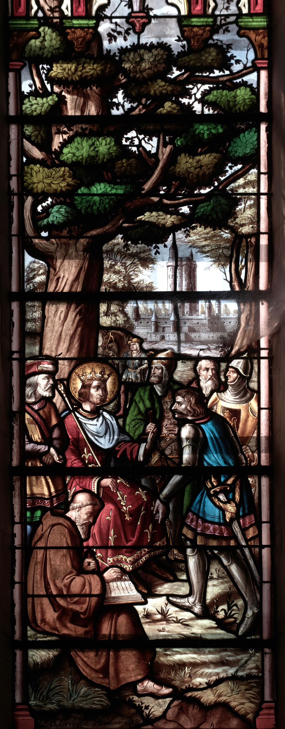 Détail du vitrail de Saint Louis rendant la justiceImmatriculation