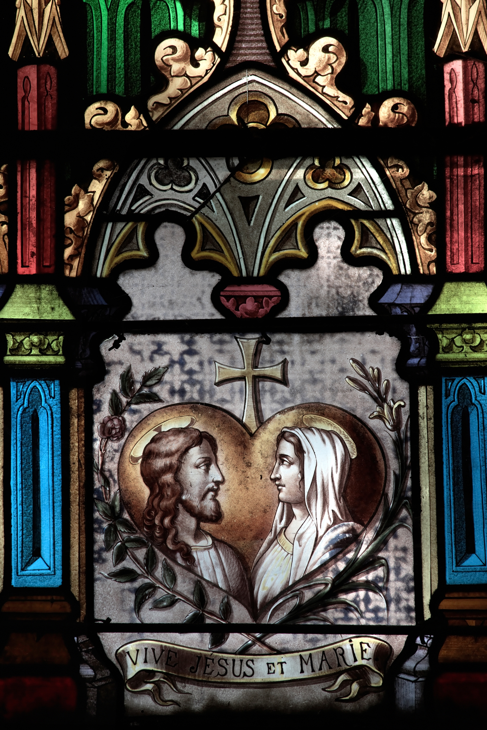 Détail de la baie présentant saint Louis rendant la Justice, Jésus et Marie dans le choeurImmatriculation