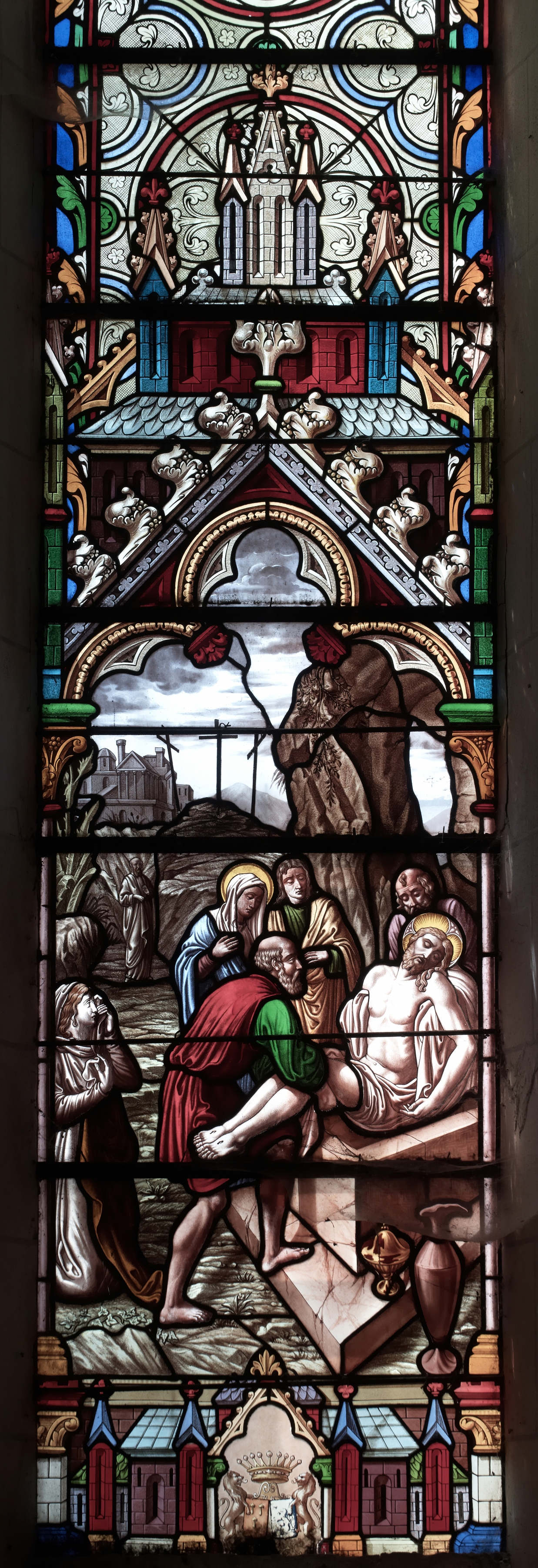 Vitrail, station 14, le Christ est mis dans le sépulcreImmatriculation