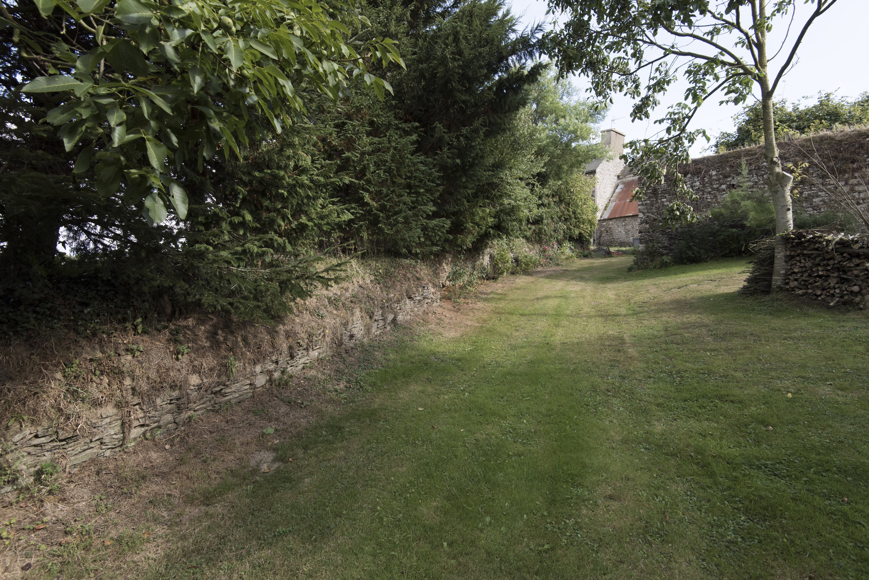 Chemin bordé d'un muret au nord de la ferme. Vue générale nordImmatriculation