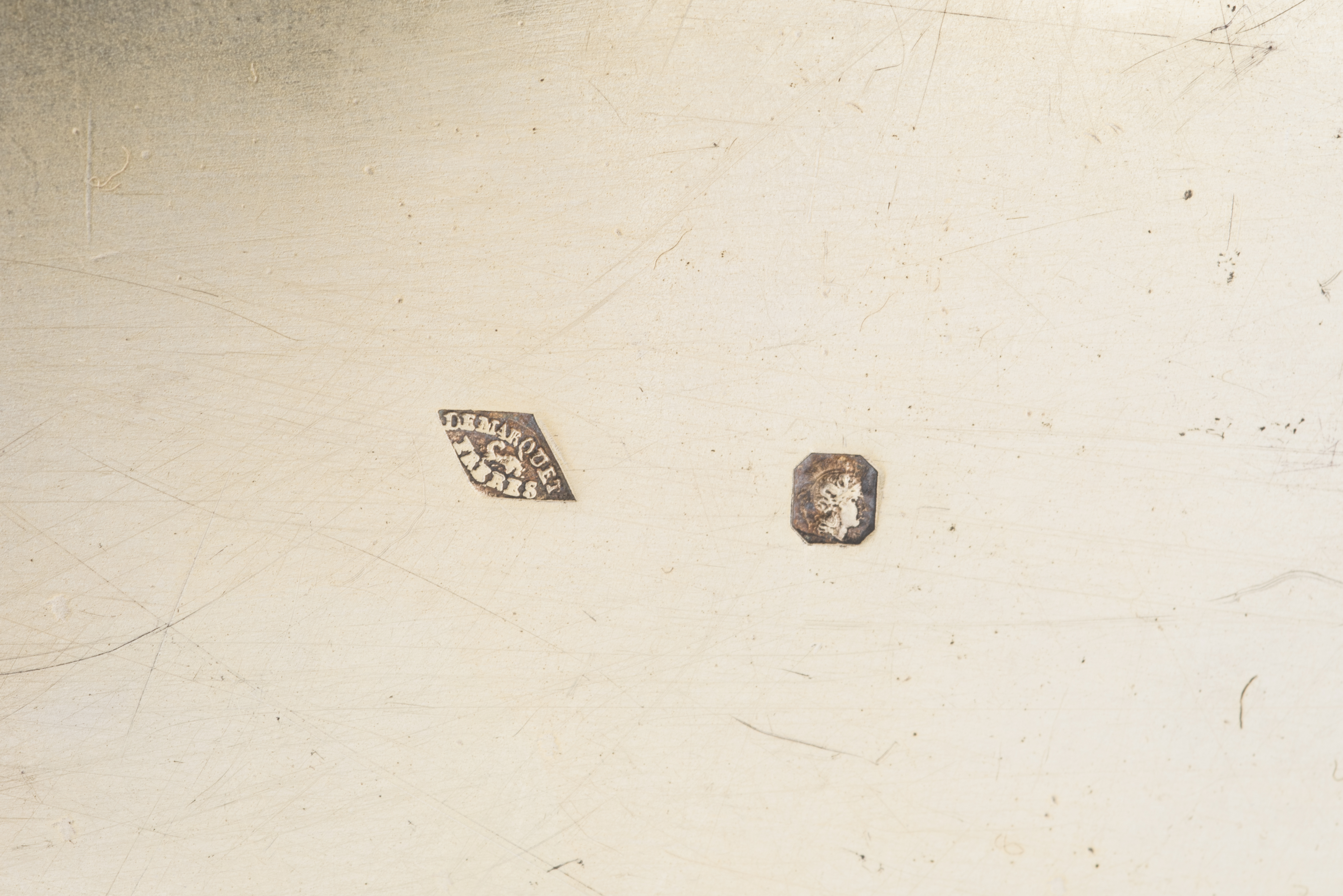 Plateau et burettes - détail des poinçonsImmatriculation