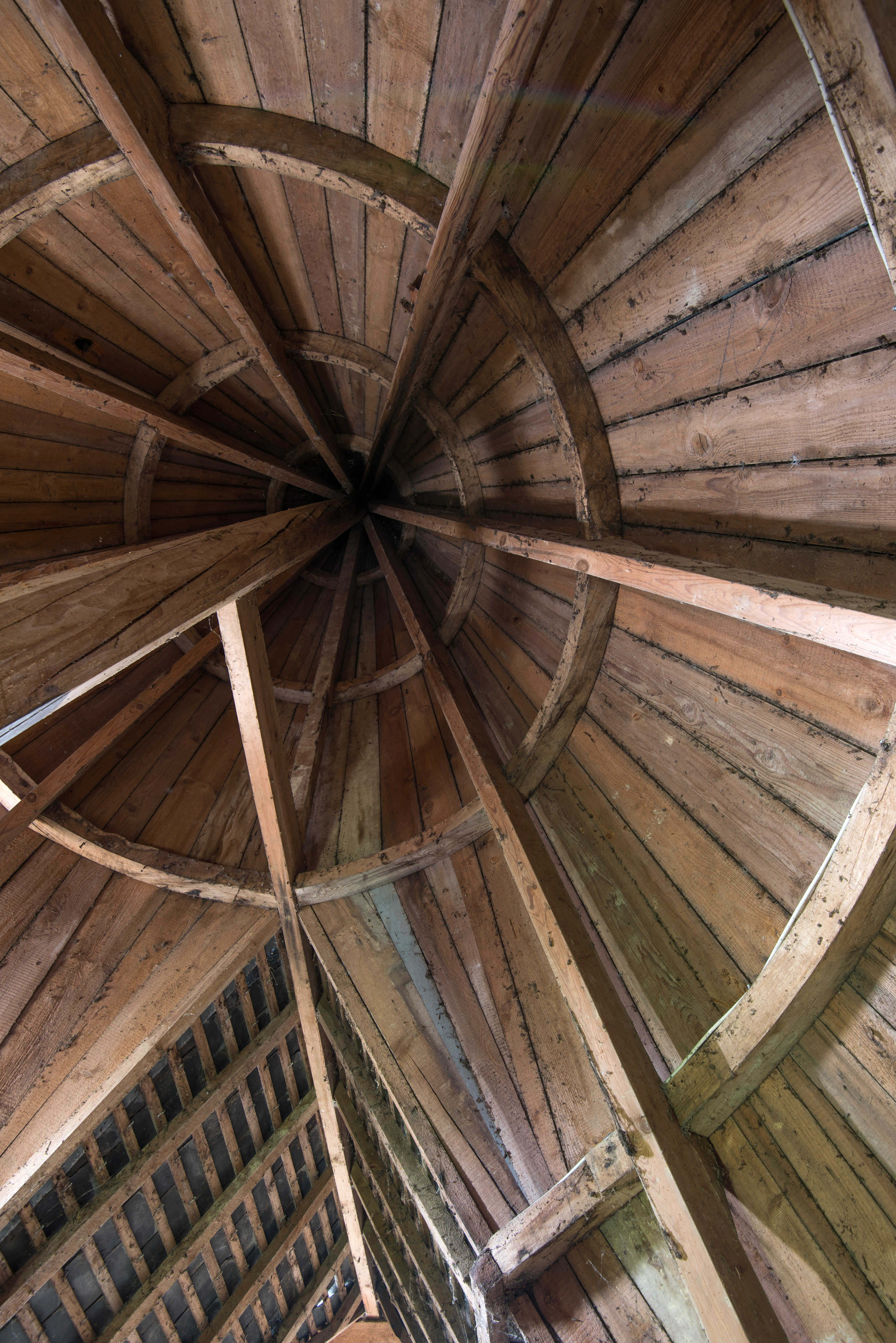 Langoat, Le Cosquer : manoir puis ferme, tour d'escalier, détail de la charpenteImmatriculation