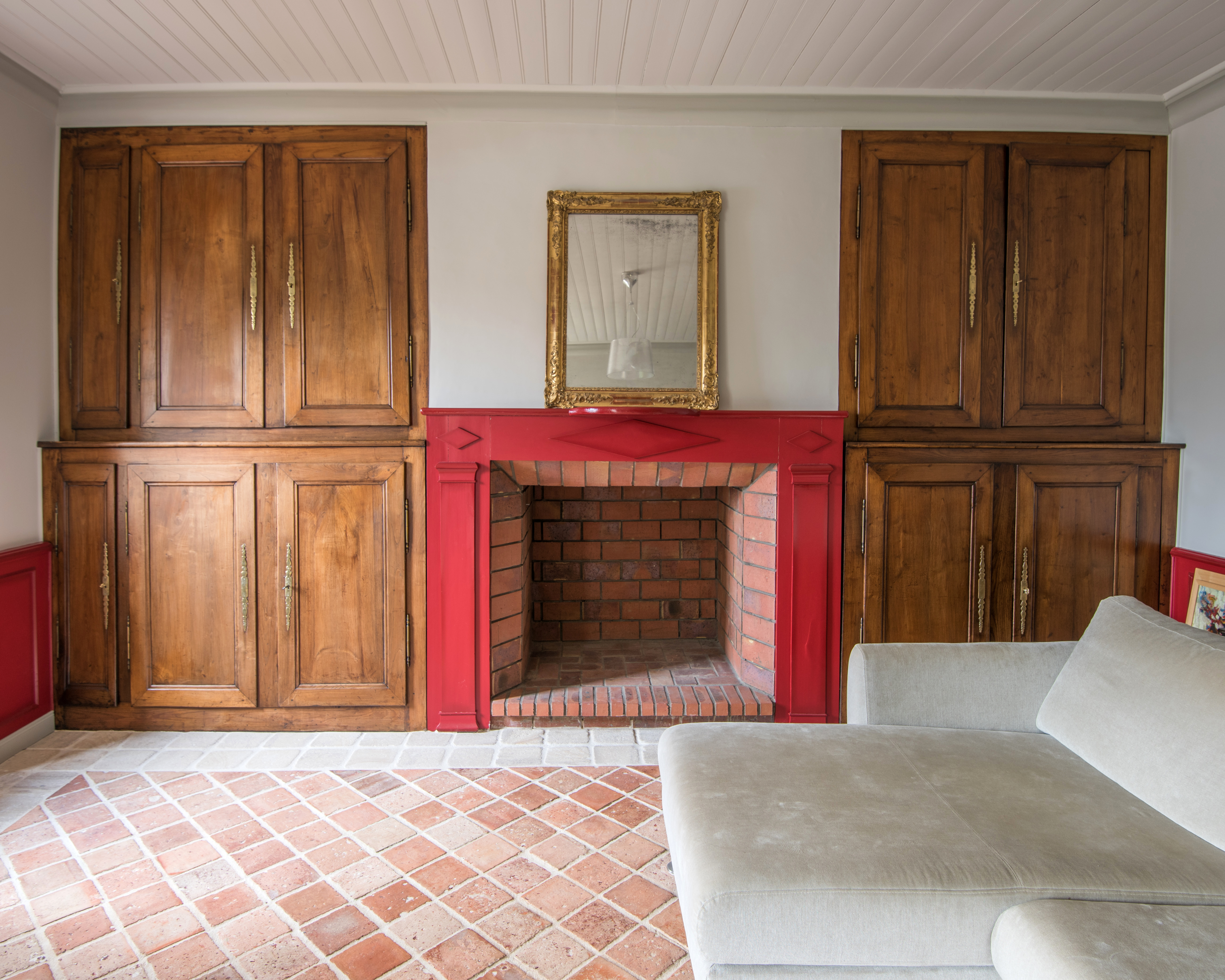 Pièce Ouest du rez-de-chaussée. Meubles d'attache et cheminée de la 1ère moitié du 19e siècle.Immatriculation